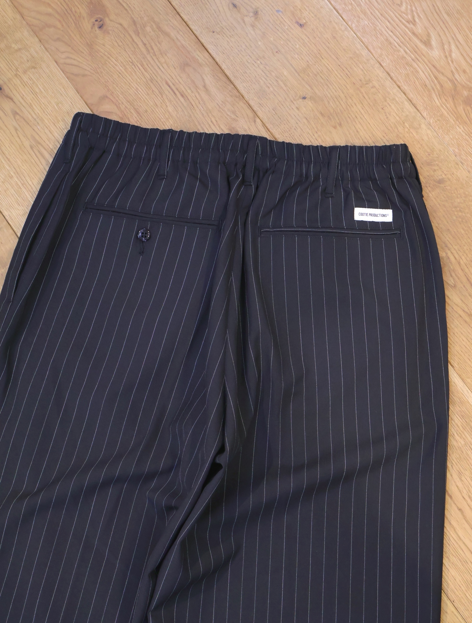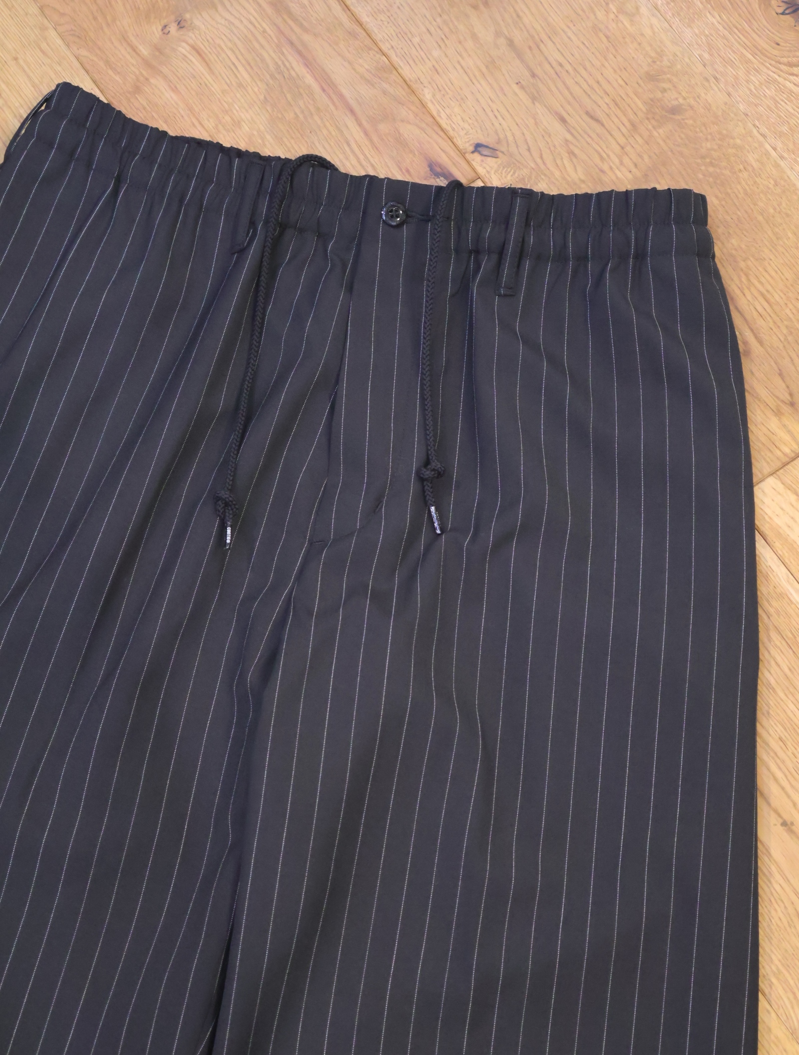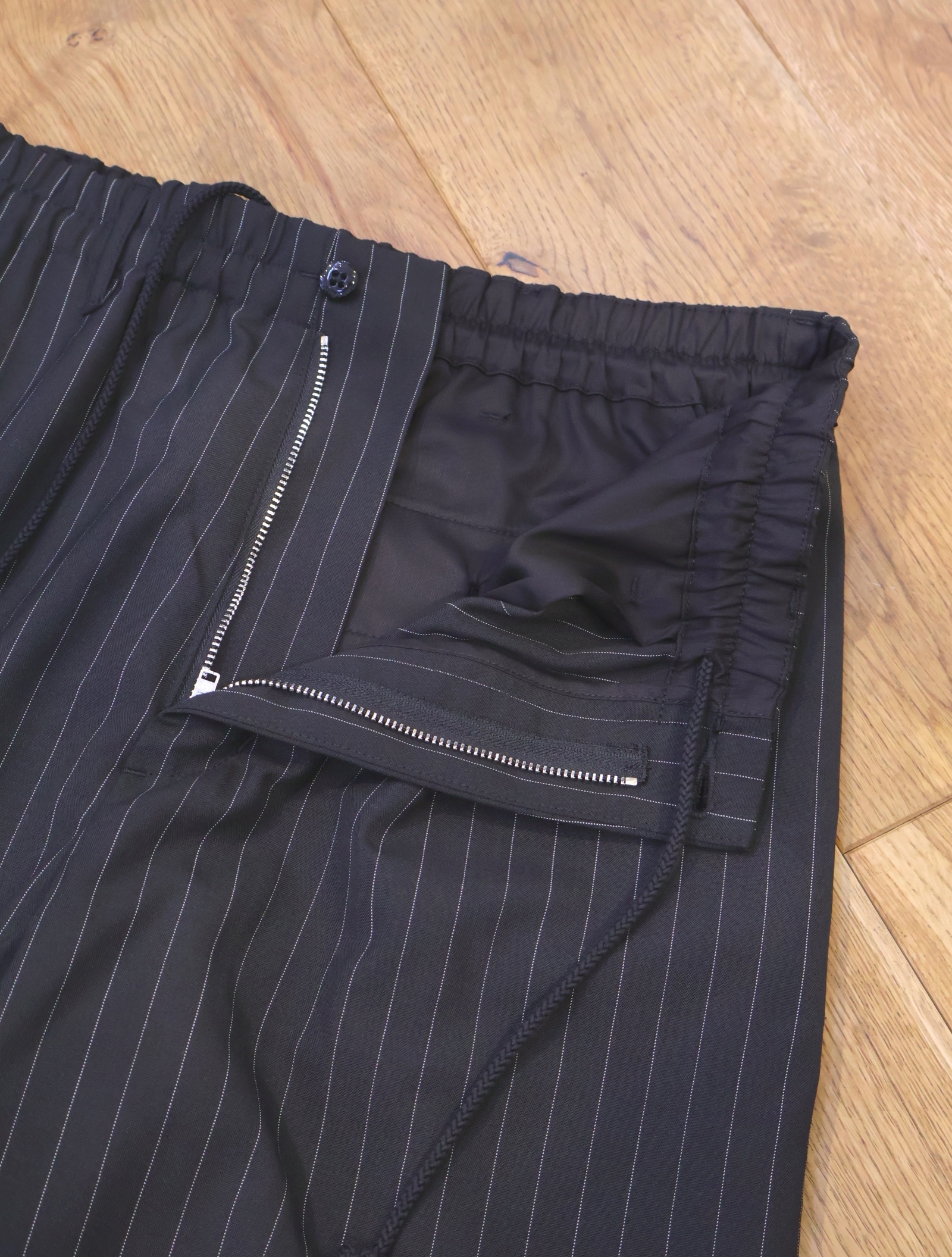 ウエストは前開きありのドローストリング、ゴムのイージー仕様です。