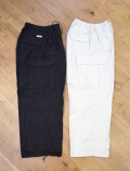 ウエストは前開きありのゴム、ドローストリングのイージー仕様のカーゴパンツで作製されています。