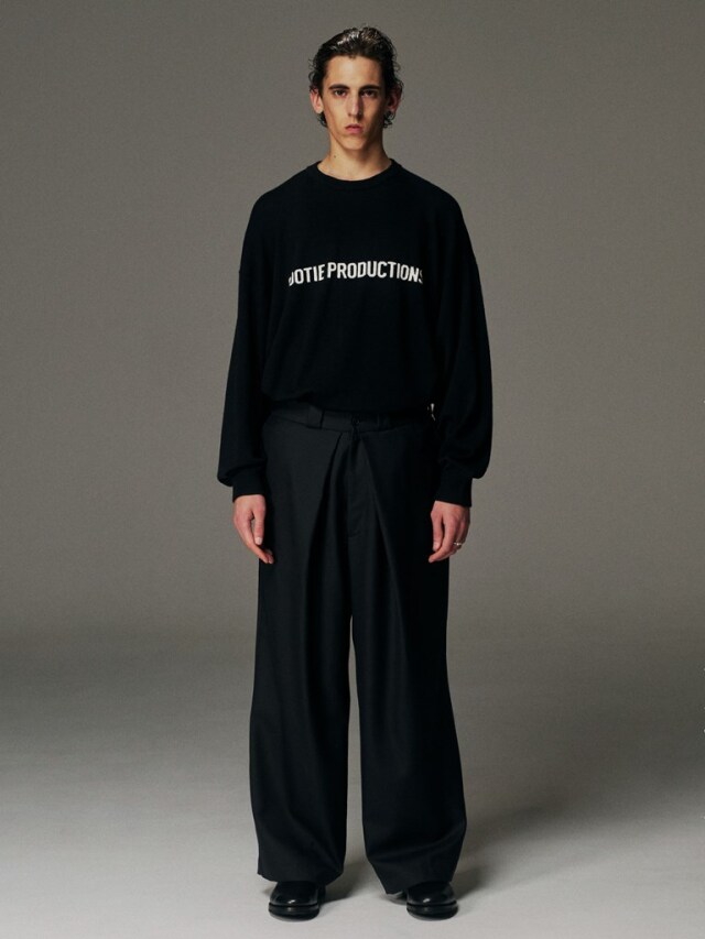 通常より大きく畳んだインタックを施したワイドシルエットです。