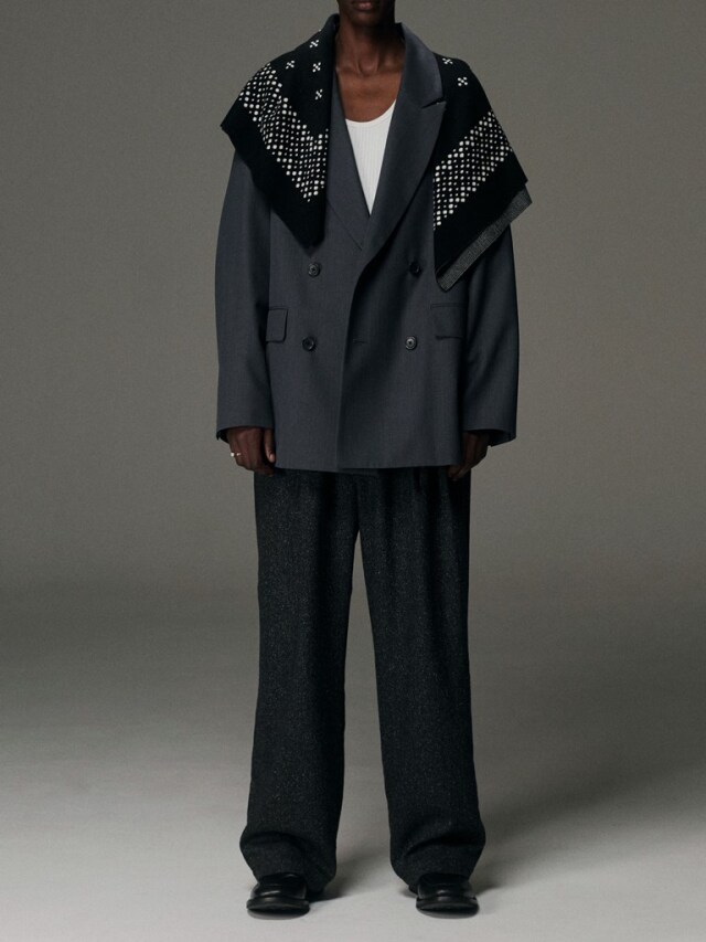 六者混のへリンボンツイードを使用したSilk Nep Herringbone 2 Tuck Wide Trousersです。