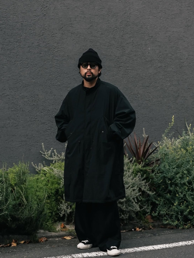 ワイドシルエットで作製していますのでライトアウター等の上からオーバーコートとしても着ていただけます。