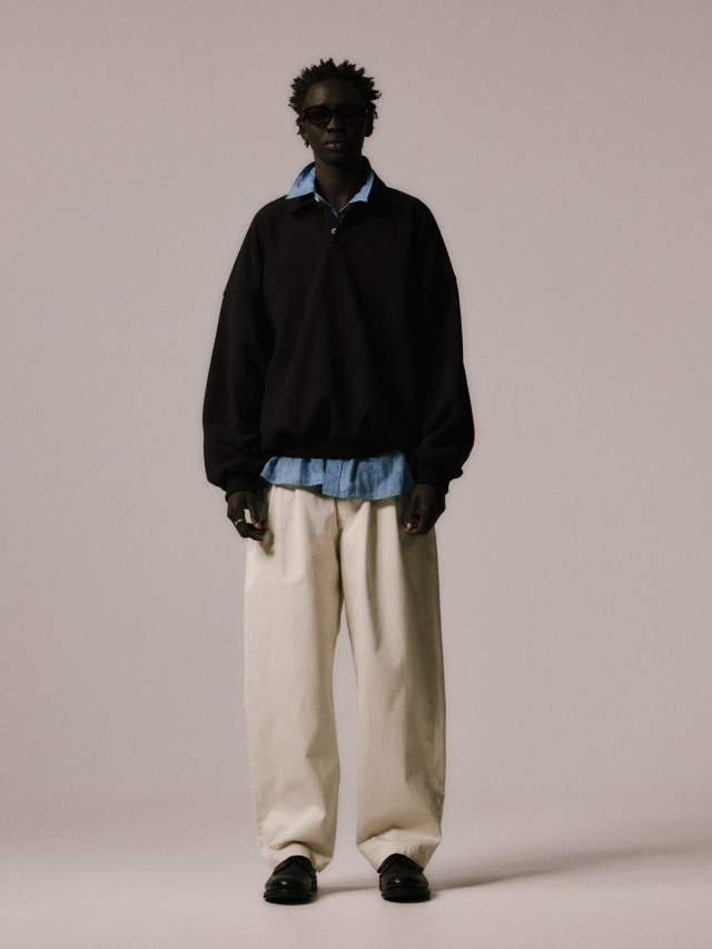 毛足が短い両面起毛の難燃フリースを使用したFleece Sweat Polo Shirtです。