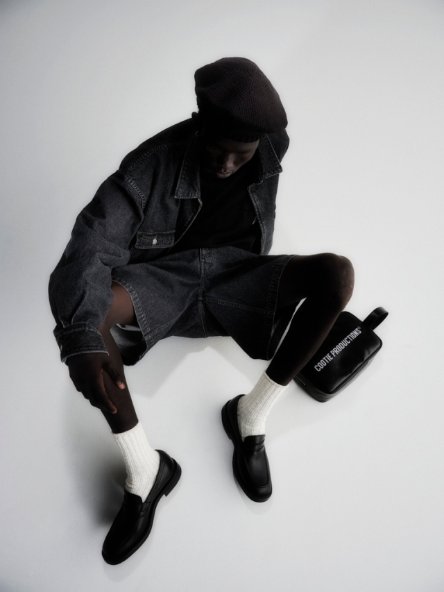 綿アクリルの混紡糸を使用しざっくりと編み上げられ、ややコンパクトなシルエットにしあがっています。