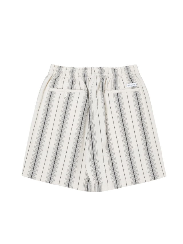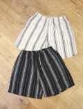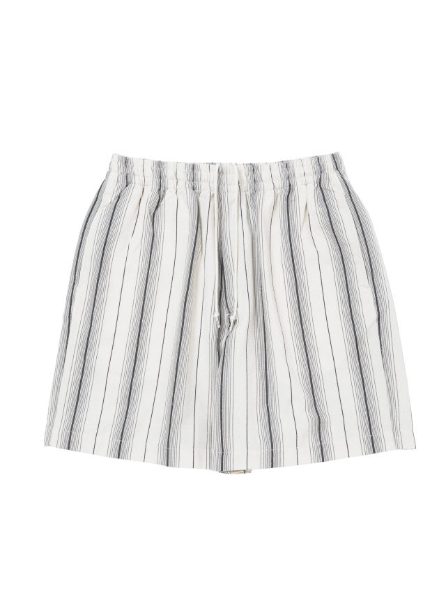 レーヨン、シルクネップ、ポリエステルの三者混ストライプ生地を使用したDobby Chain Stripe Easy Shortsです。