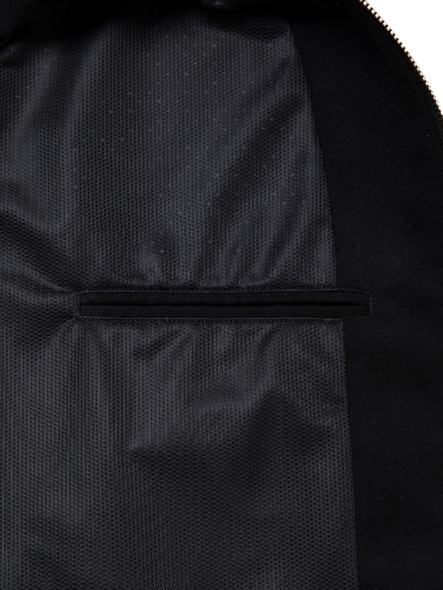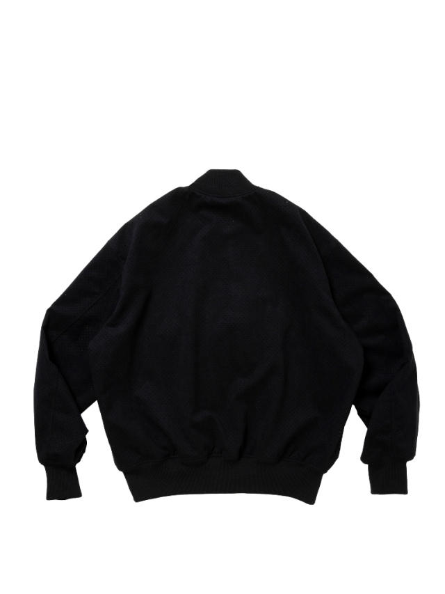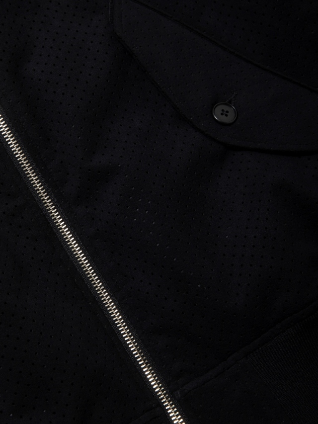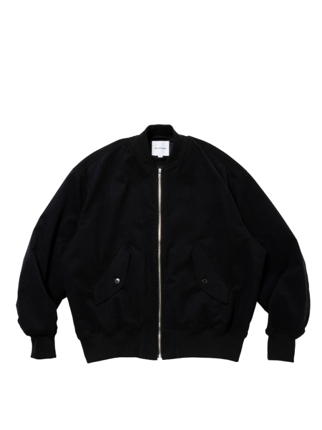 マイクロファイバーならではの滑らかで柔らかい質感を持つビーガンスエードに対し、パンチング加工を施したオリジナルファブリックを使用したPunching Faux Suede Bomber Jacketです。