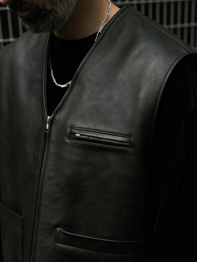 シンプルなデザインなので様々なアイテムと相性の良い、合わせやすい一着に仕上がっており、レザーアイテムならではの経年変化も楽しんでいただけるアイテムです。