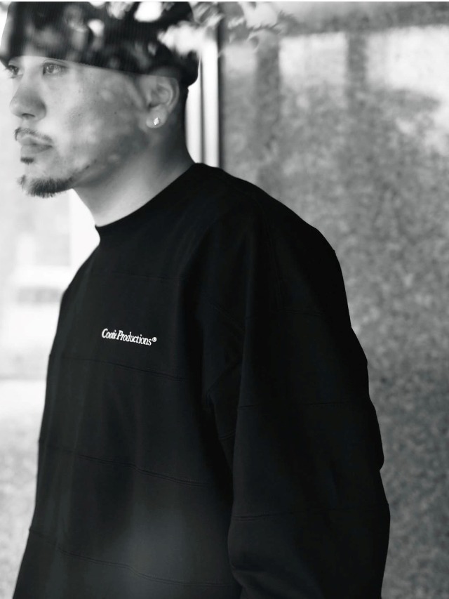 オリジナルで作成したプレーティング天竺を使用したPlaited Jersey Paneling Border L/S Teeです。