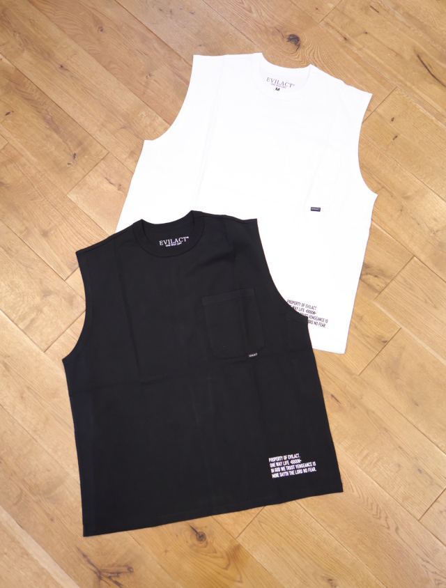 ブランド定番のオリジナルのテキスタイルで作成したWHITE, BLACK、2色1セットのノースリーブポケットティーシャツが25SSコレクションからも再リリースです。