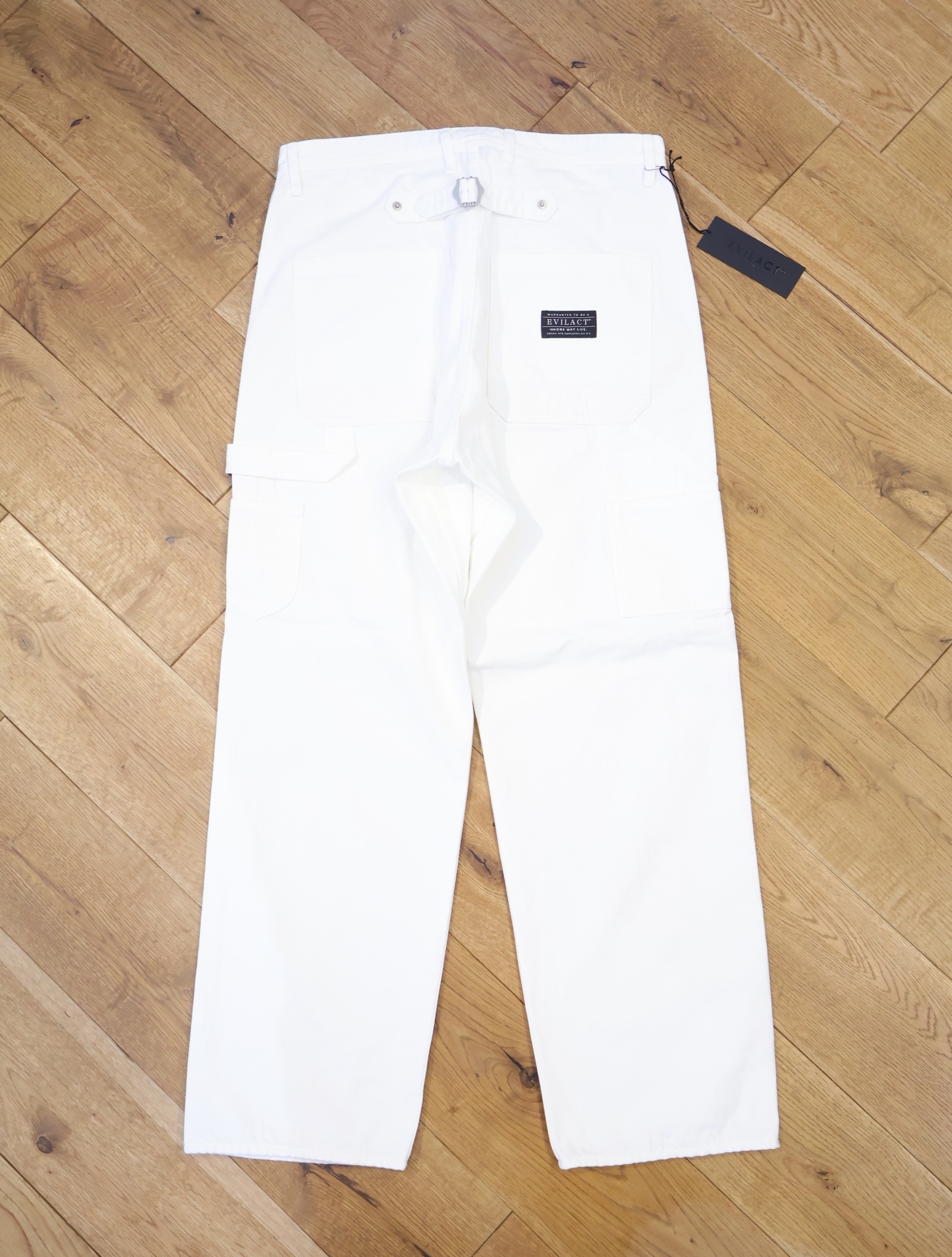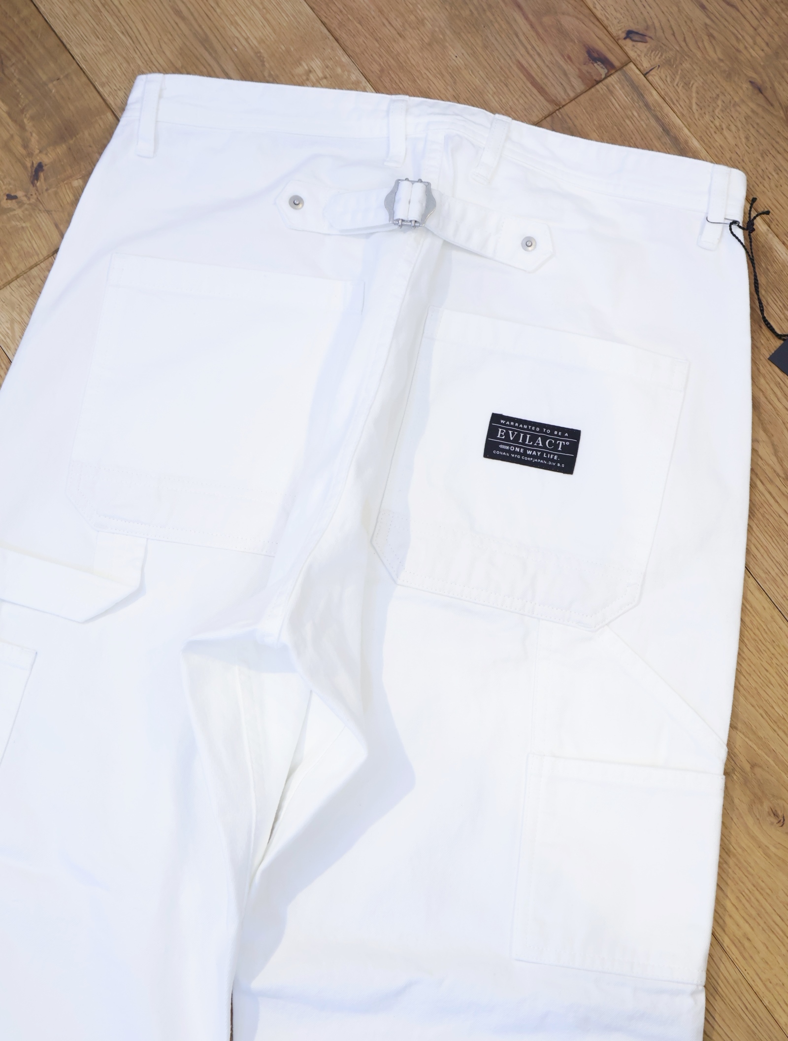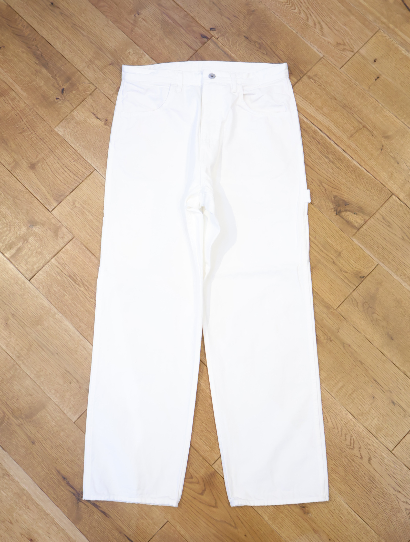 ペインターパンツ本来のデザイン性を残しながらも、ヒップからワタリ幅、スソへのテーパードをさせすぎない細かなパターンワークで作製。