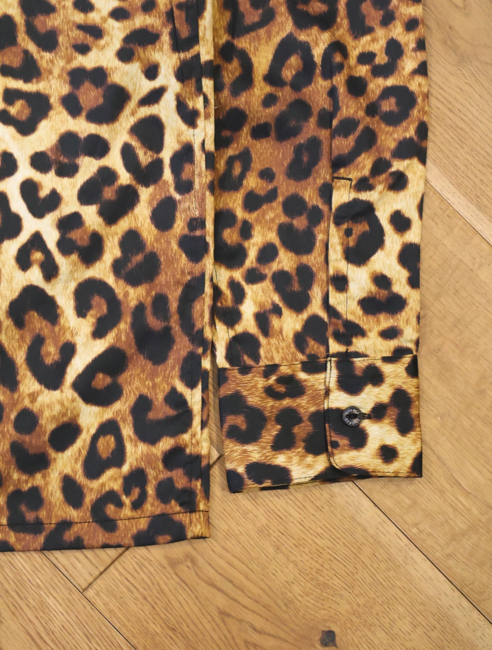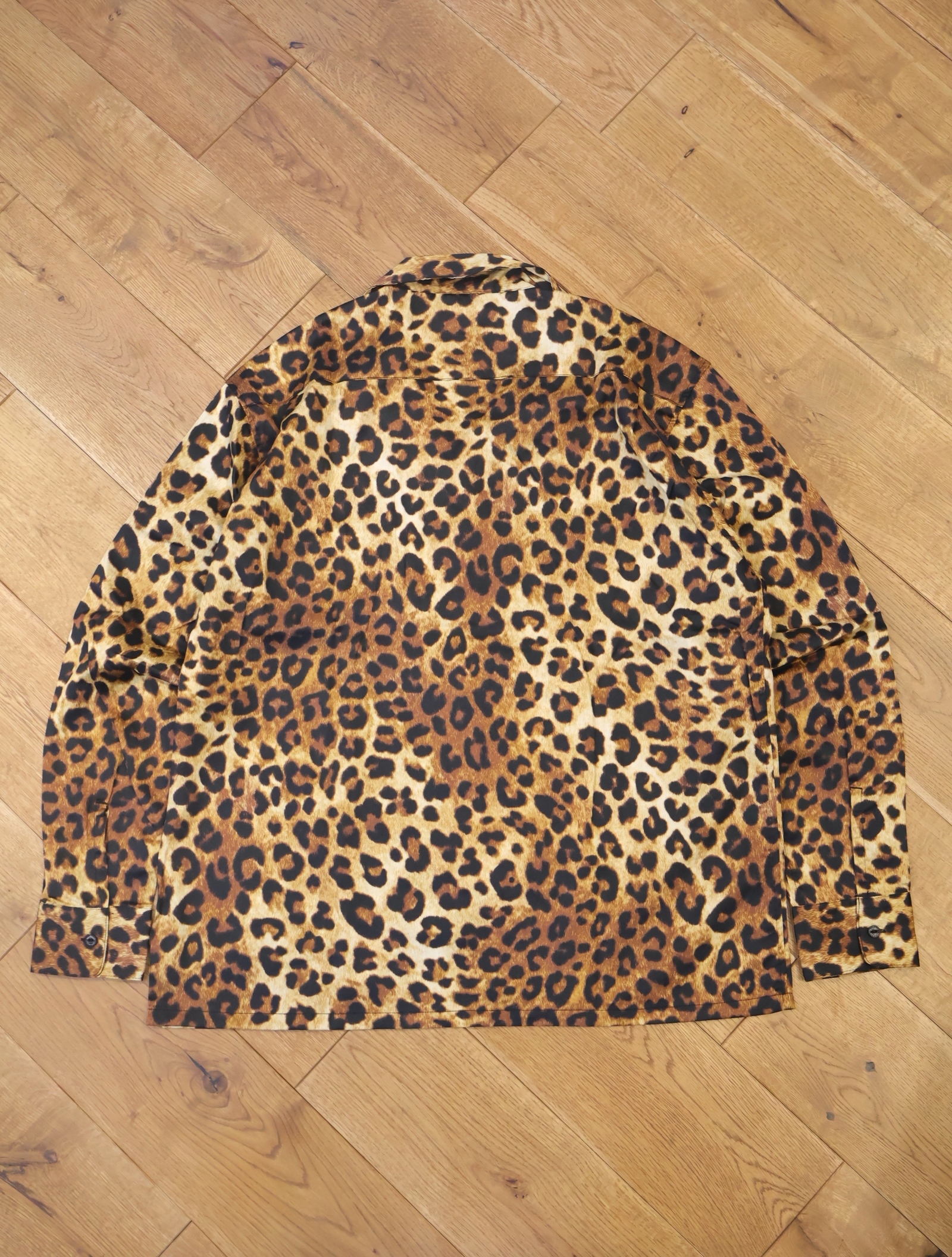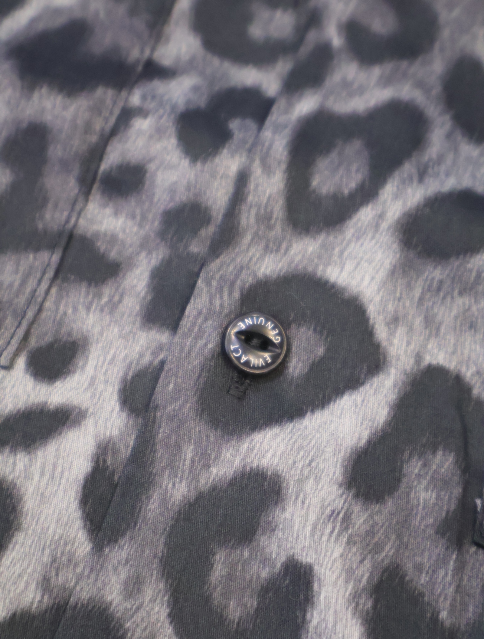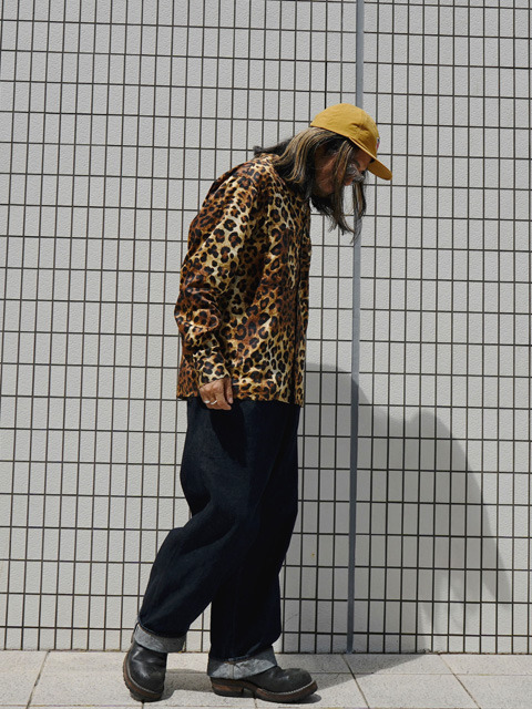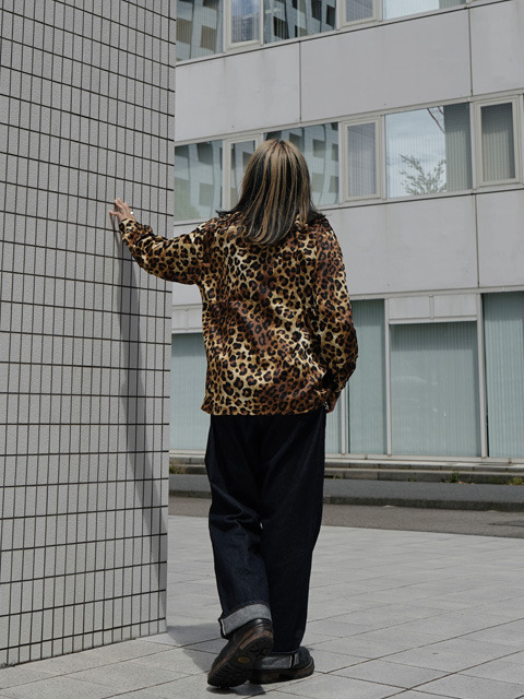 リアルなレオパード柄をプリントしたライトオンスのコットン生地にて作製されており、レーヨンのような柔らかな肌触りで、光沢感とドレープ感のある表情に仕上げられています。