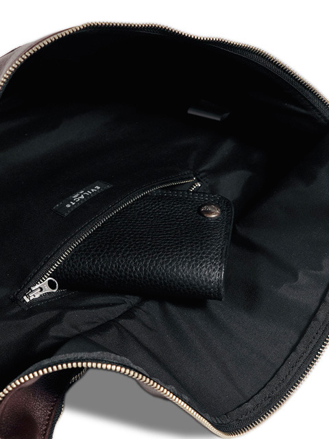 容量は約10リッターと使い勝手の良い絶妙なサイズ感で仕上げられおり、内側には小物類を小分けできるよう2つの内ポケットを付け実用性も考慮されています。