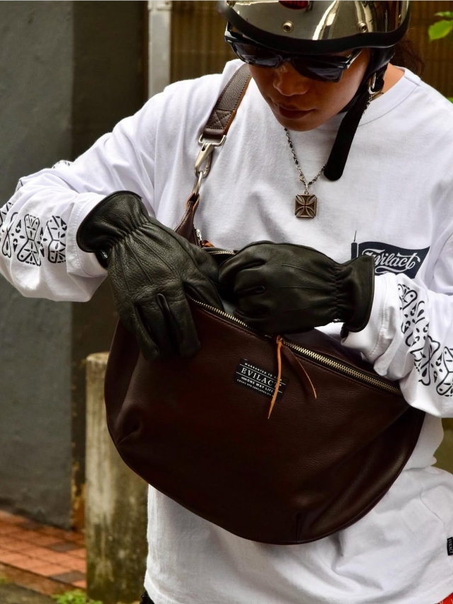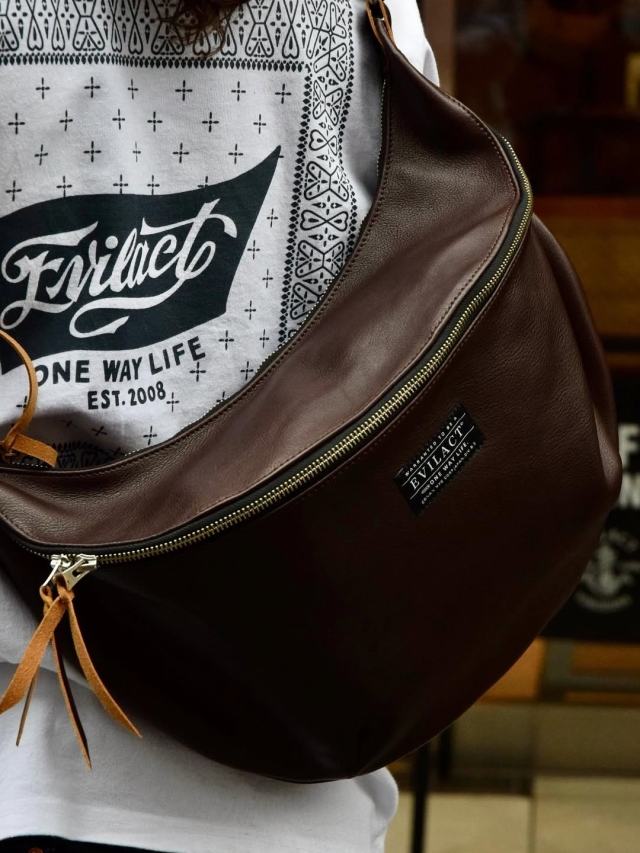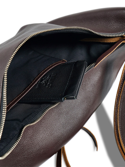 特に2輪車を乗る方が使用するのを考慮し作製され、身体にフィットするボディーバッグ的な形状が特徴です。