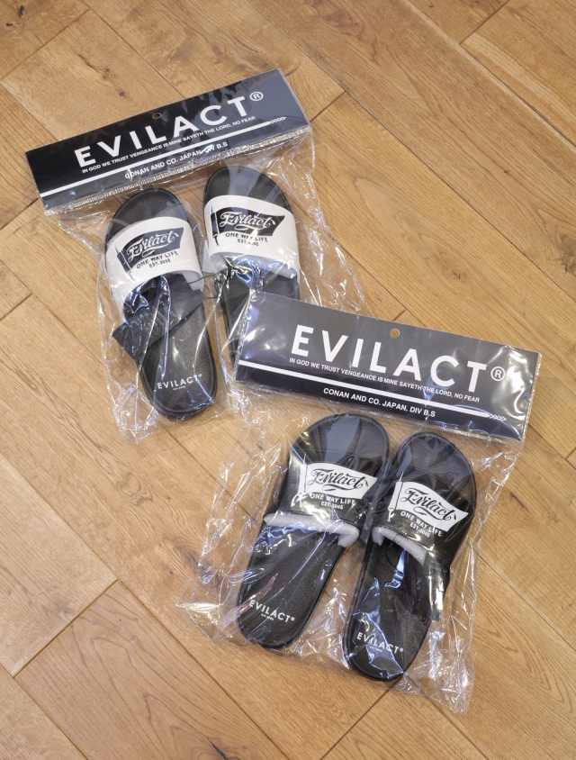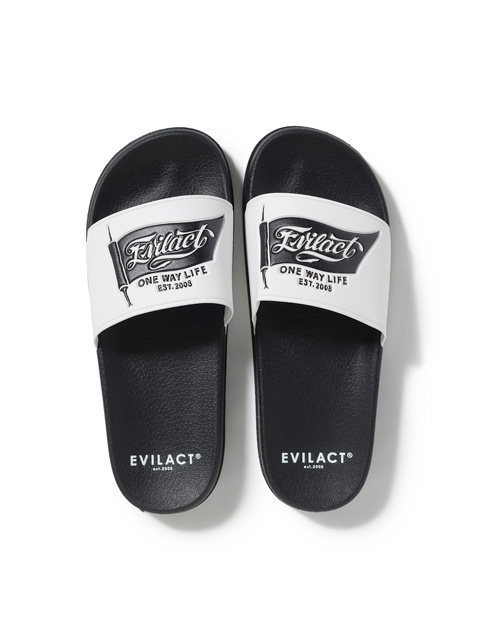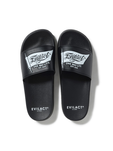 「EVILACT FLAG」ロゴをエンボス加工であしらったサンダルです。