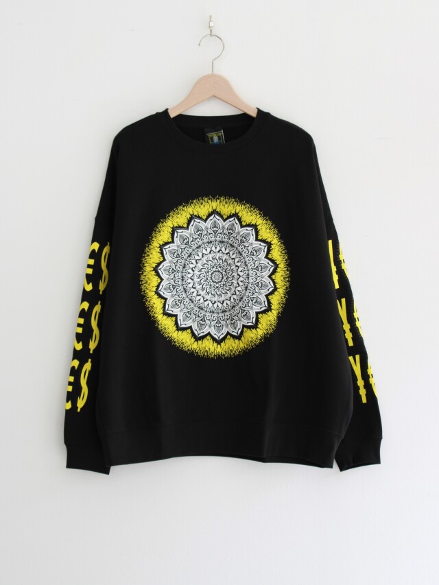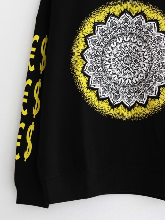 袖部分には¥、€、$で構築されたアイコニックなロゴがプリントされています。