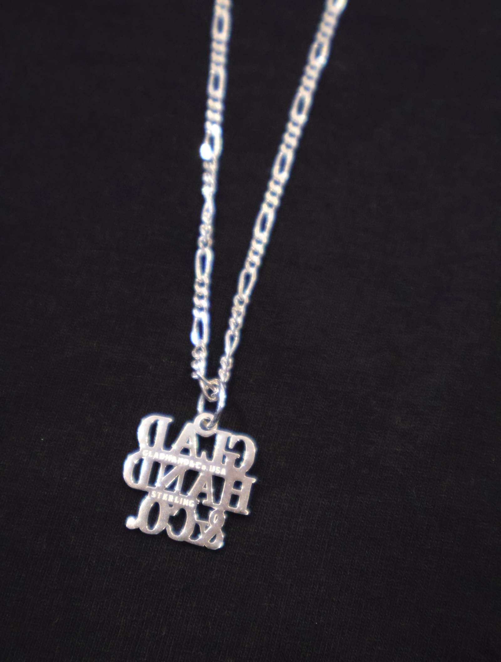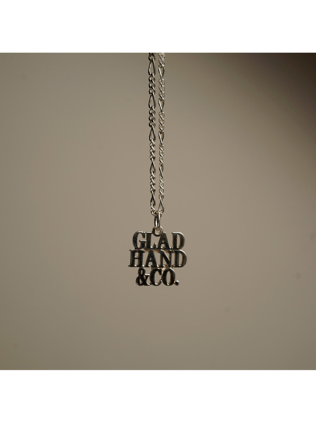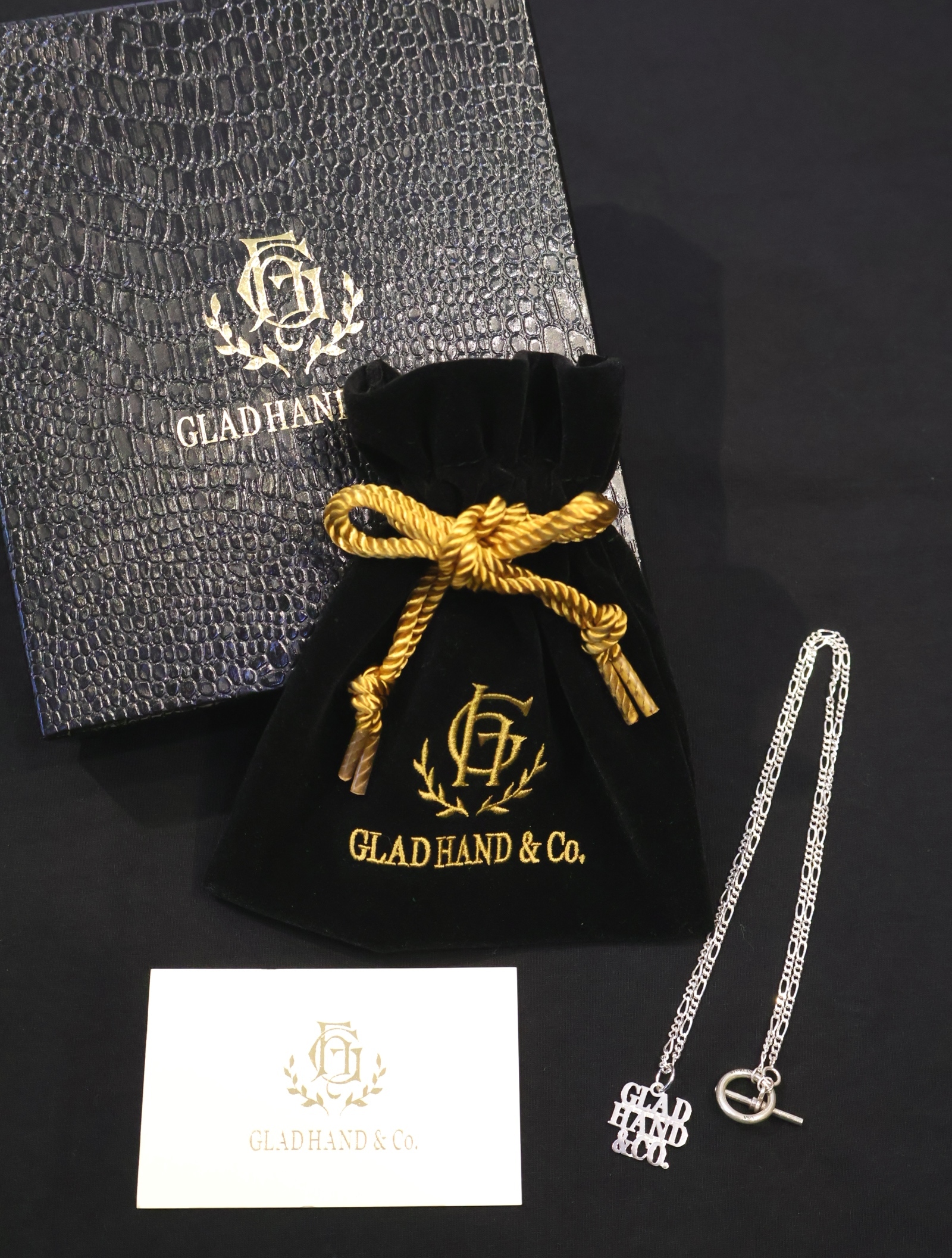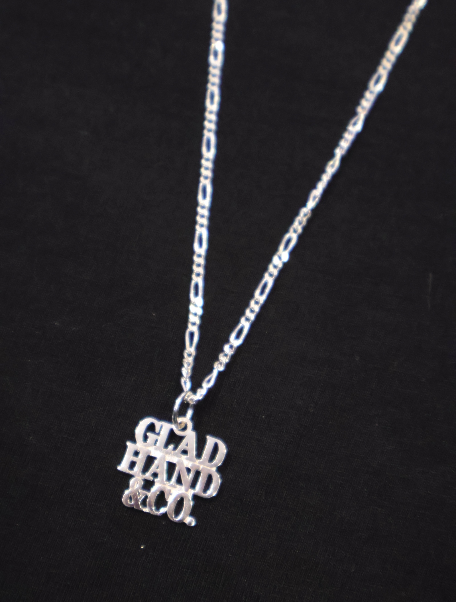 「GLAD HAND & Co」のネックレストップ、フィガロタイプのネックレスチェーン、ネックレスの留め、エンドパーツはオリジナルののTバーデザインで作製されています。
