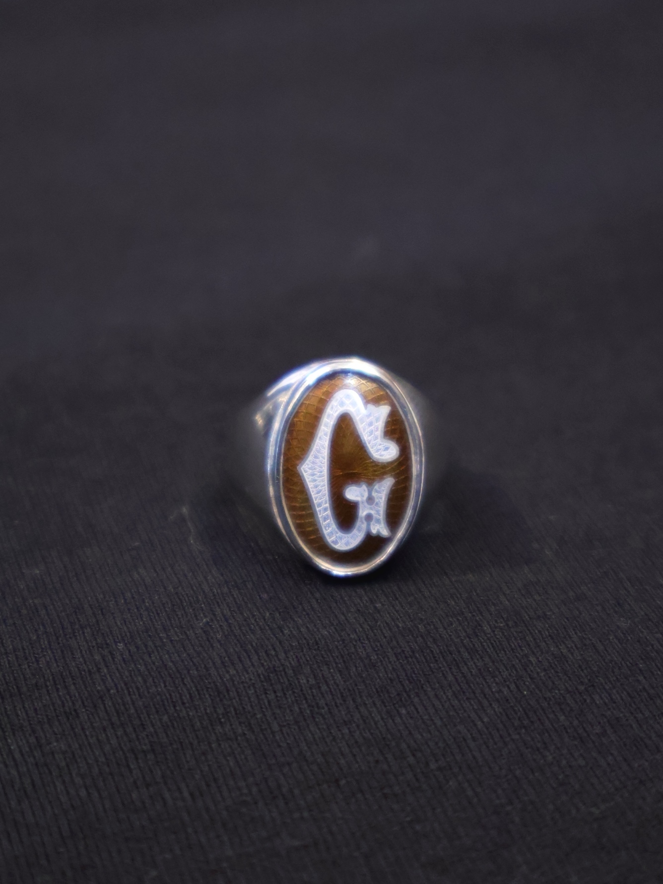 VINTAGEのラペルピンのINSIGNIA(記章)をベースに忠実に型を起こしたピンキーリングリング下部の切込みがアクセントになっています。
