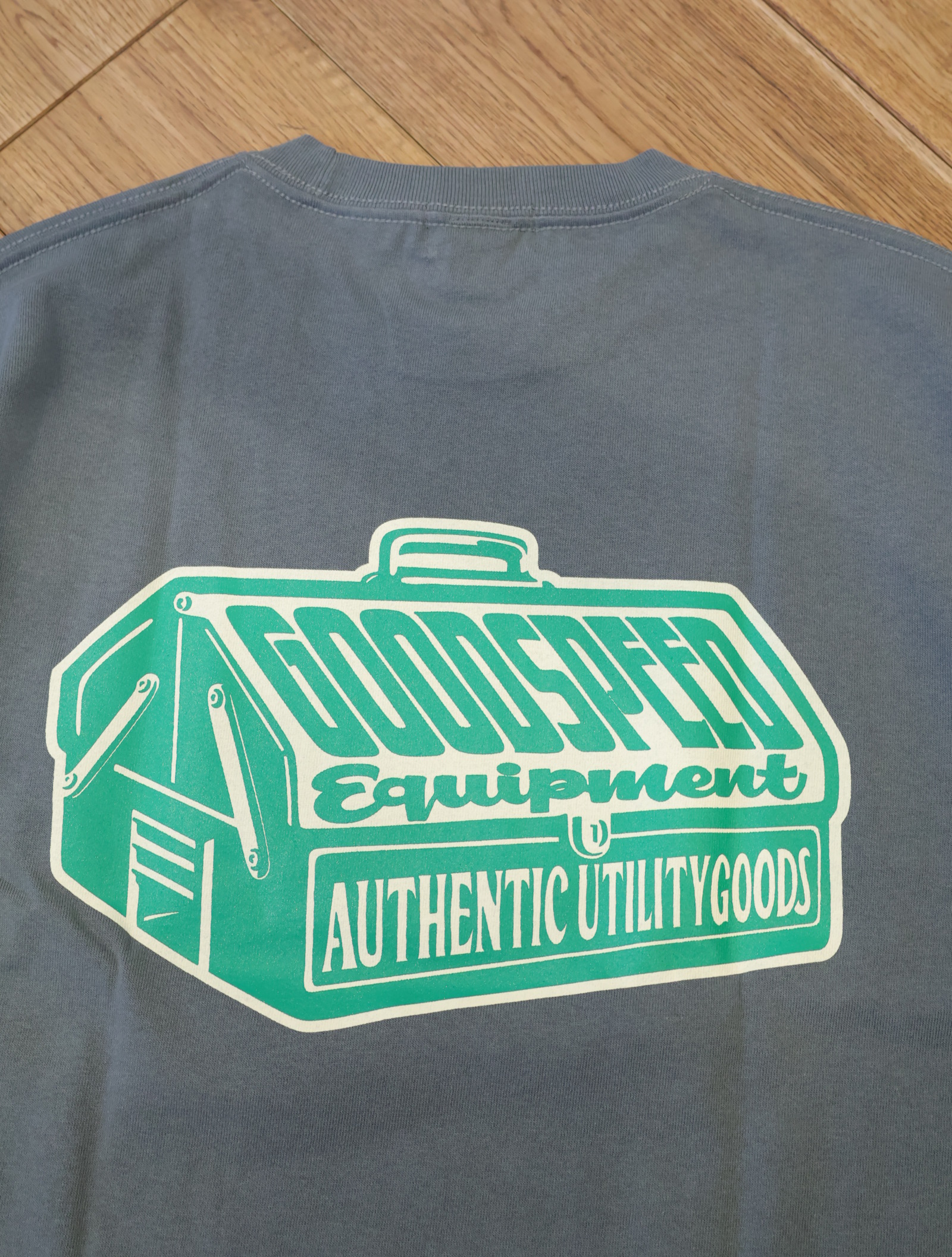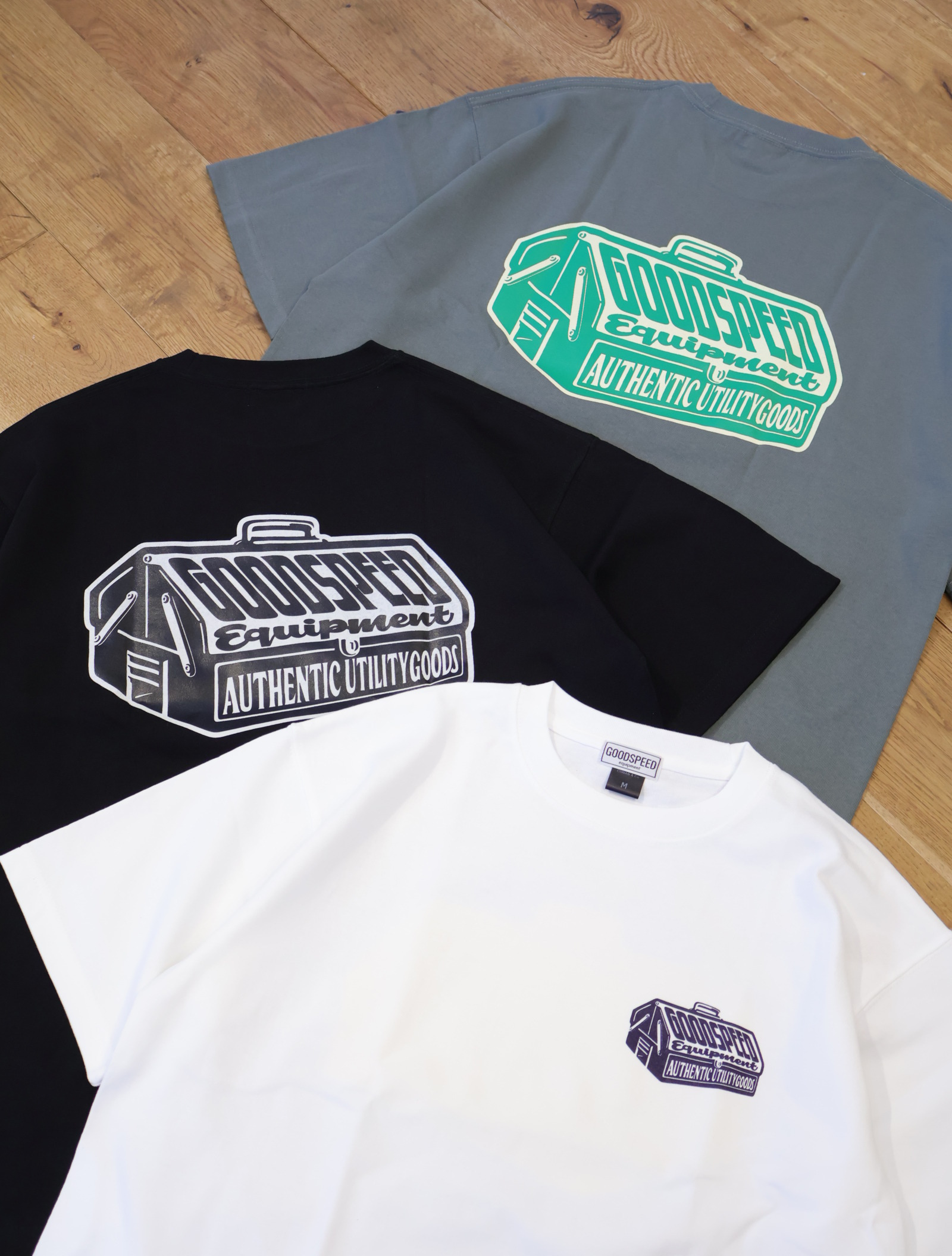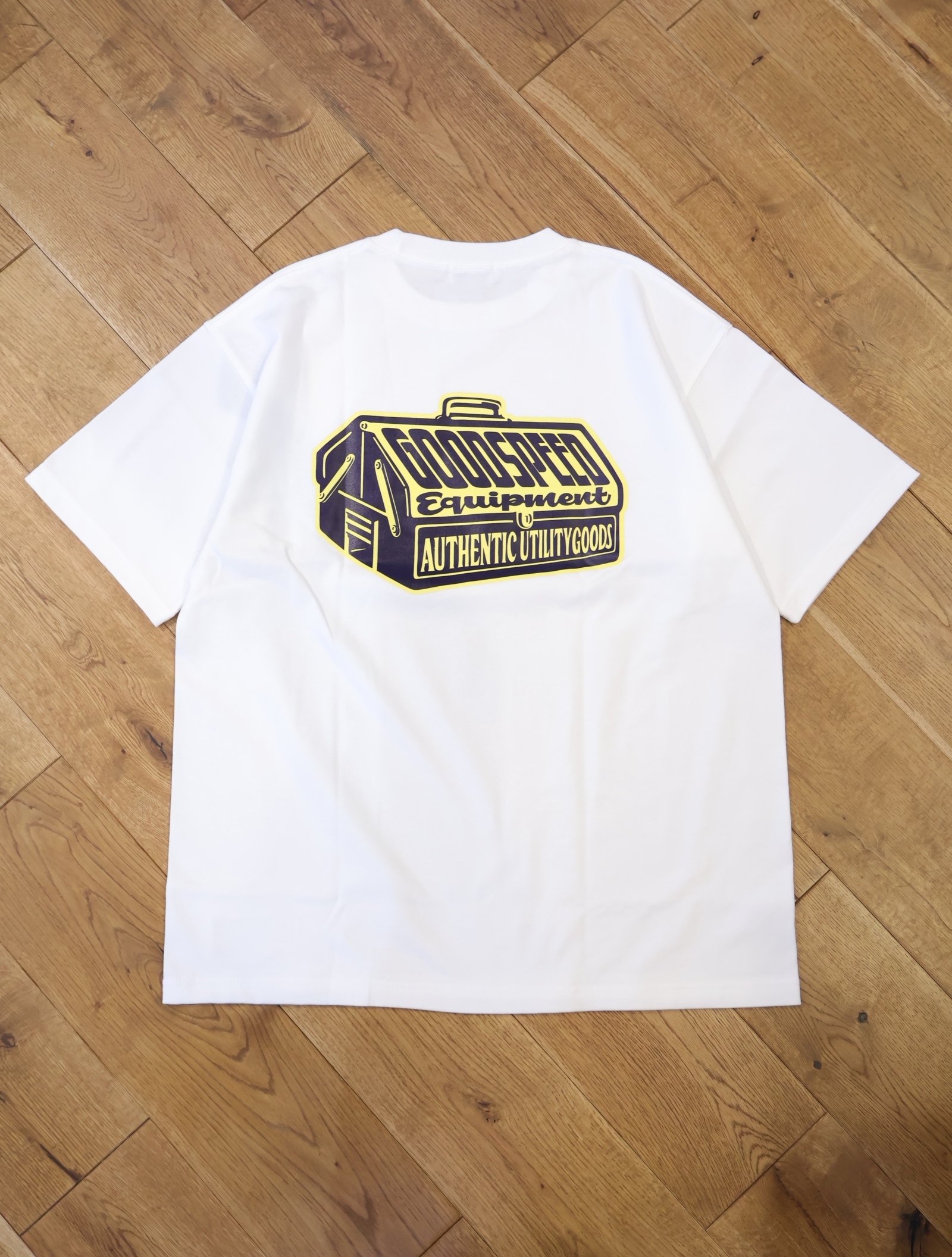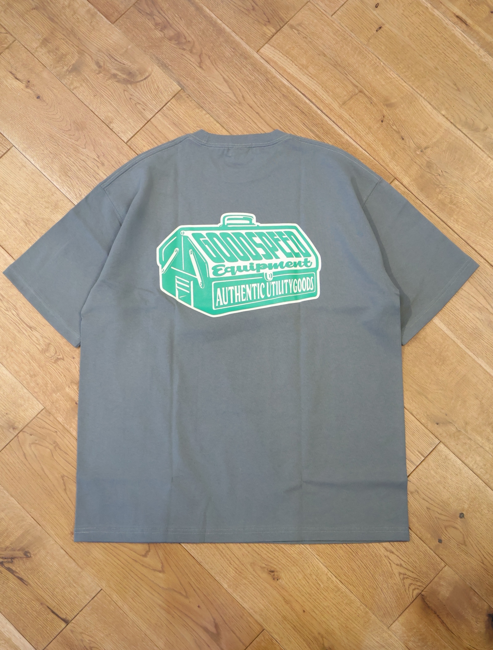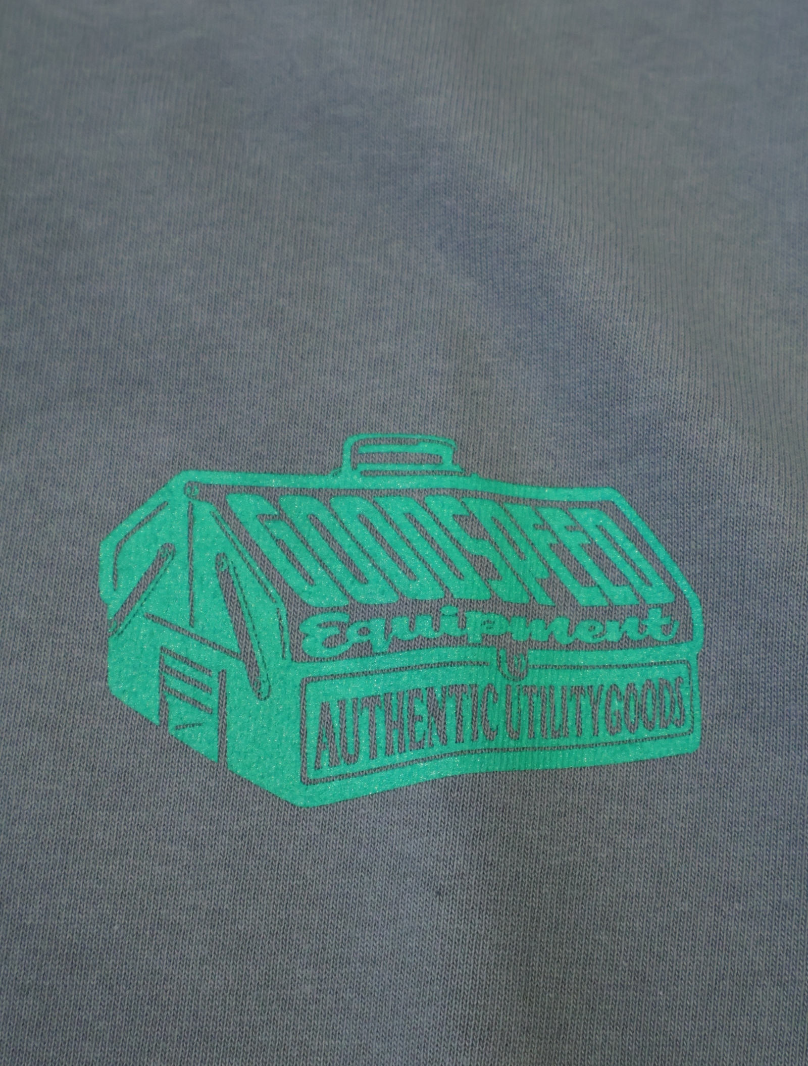 着丈、身巾にゆとりを持たせたビックシルエットで仕上げられており、フロント左胸とバックにオリジナルの「TOOL BOX」のグラフィックがプリント入ります。