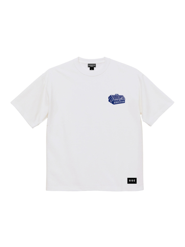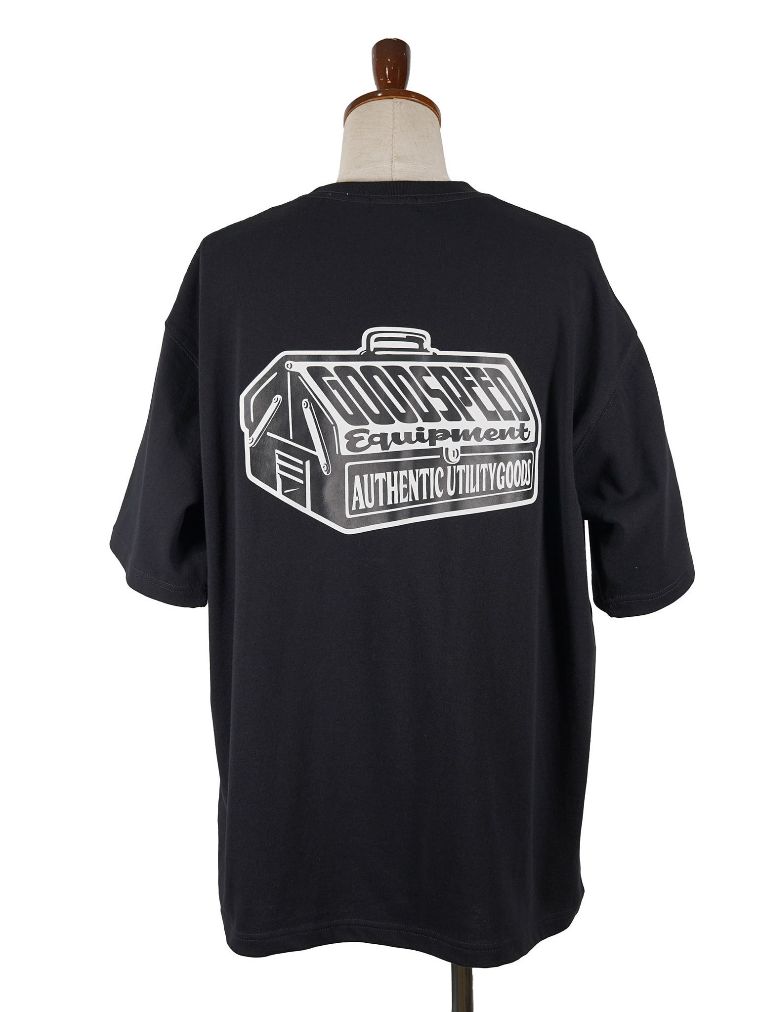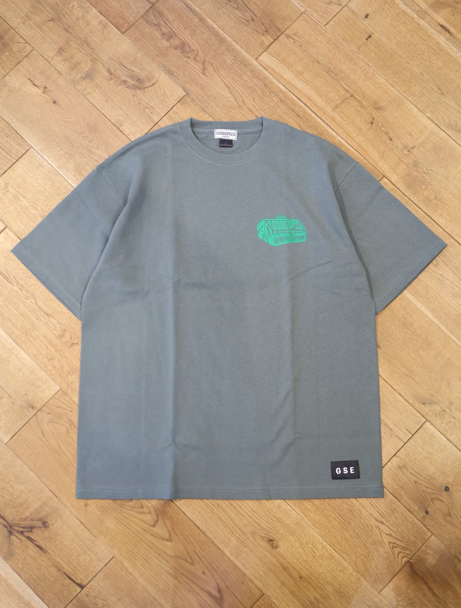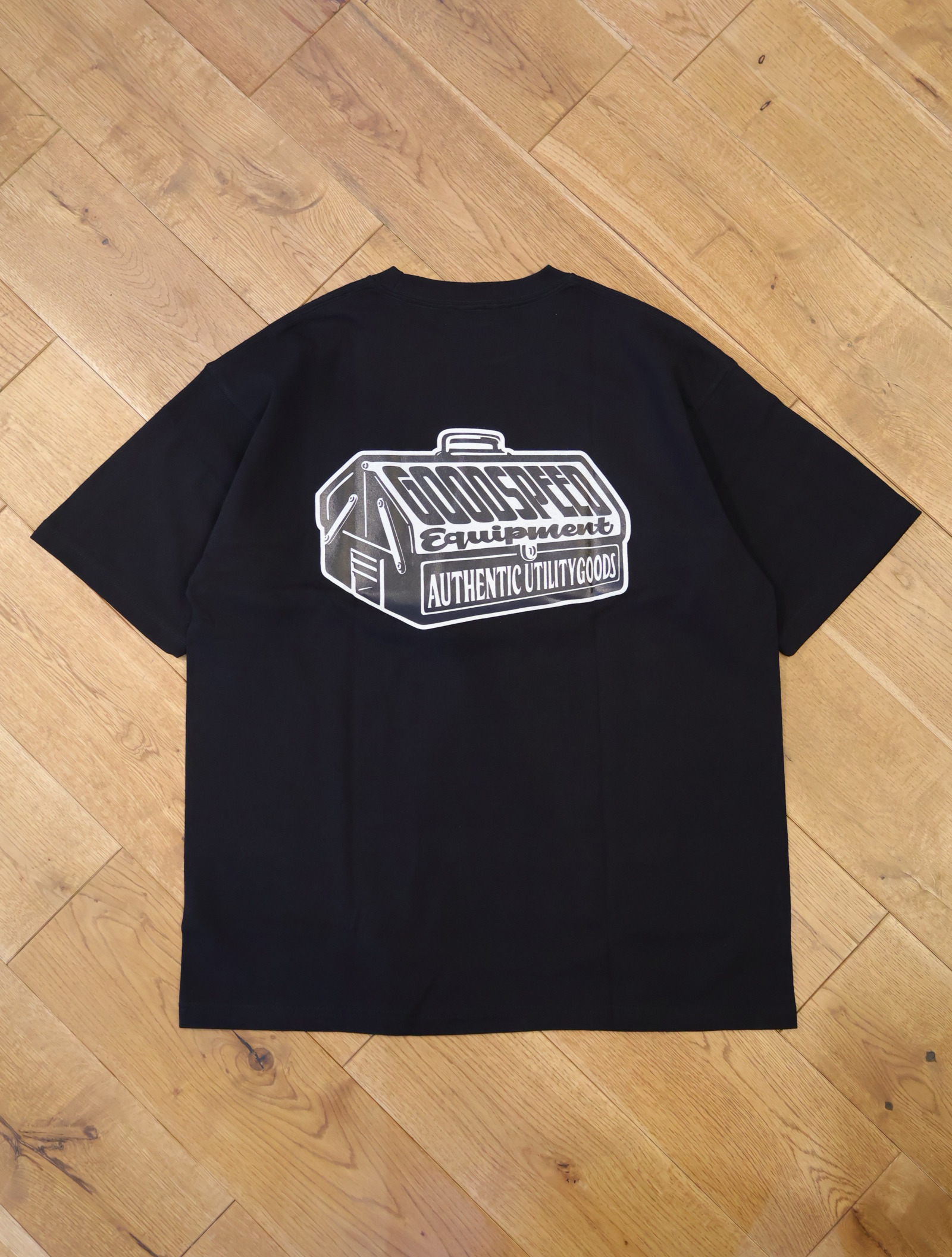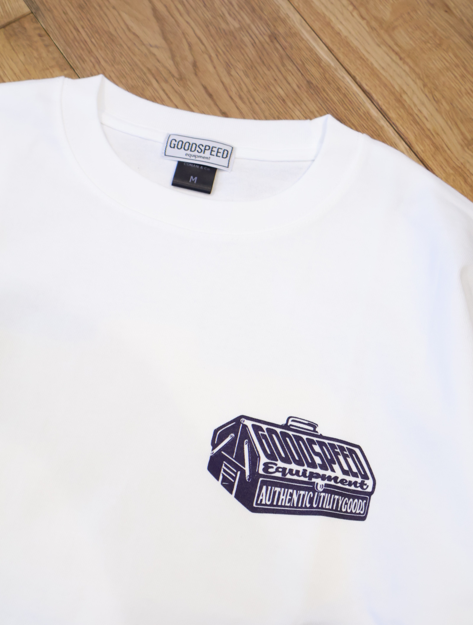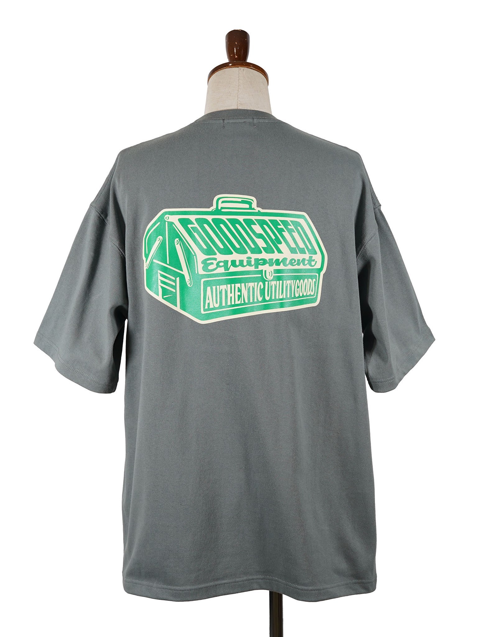 着丈、身巾にゆとりを持たせたビックシルエットで仕上げられており、フロント左胸とバックにオリジナルの「TOOL BOX」のグラフィックがプリント入ります。