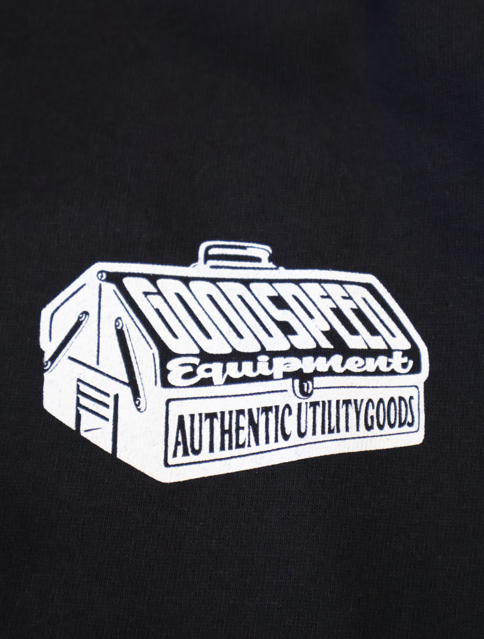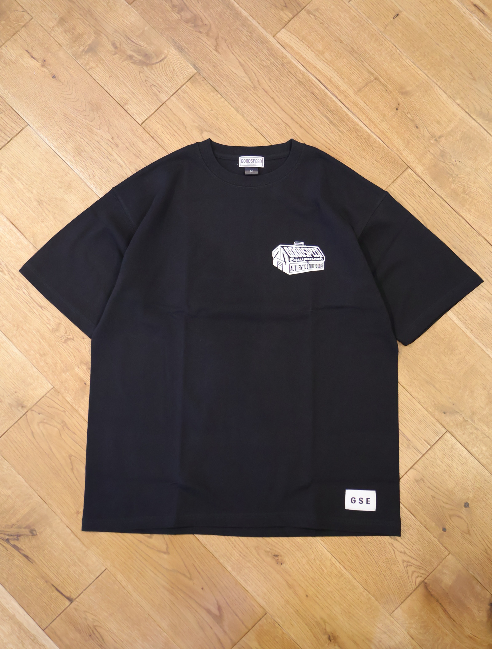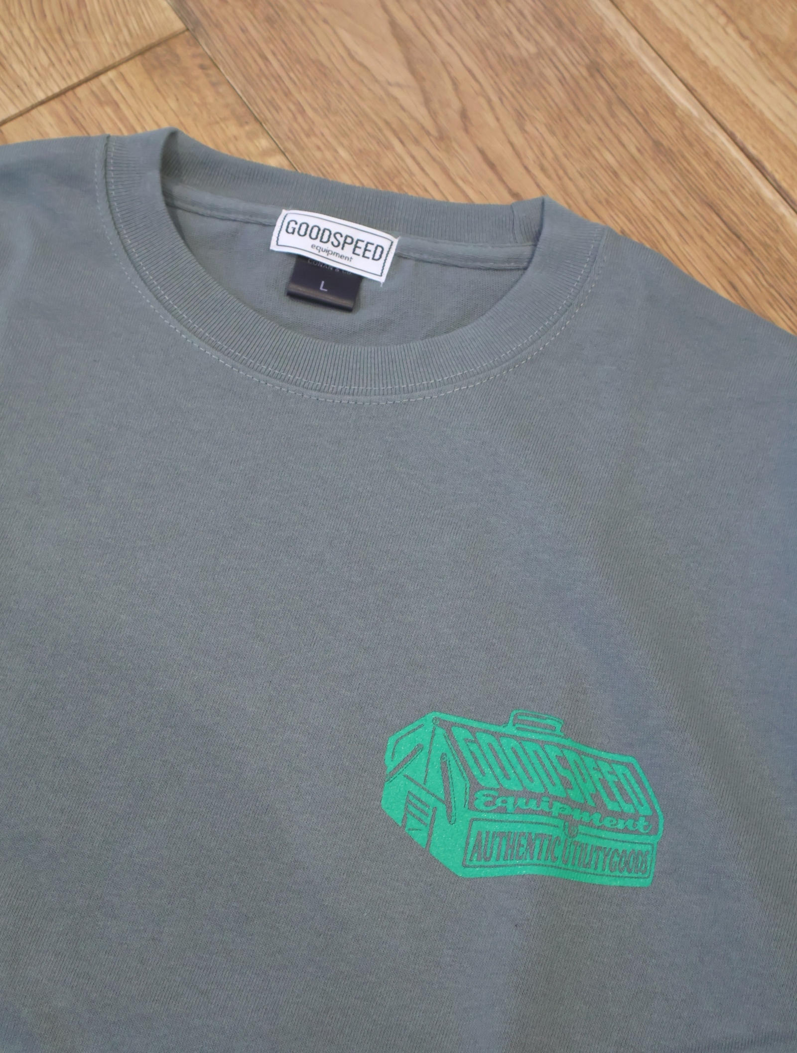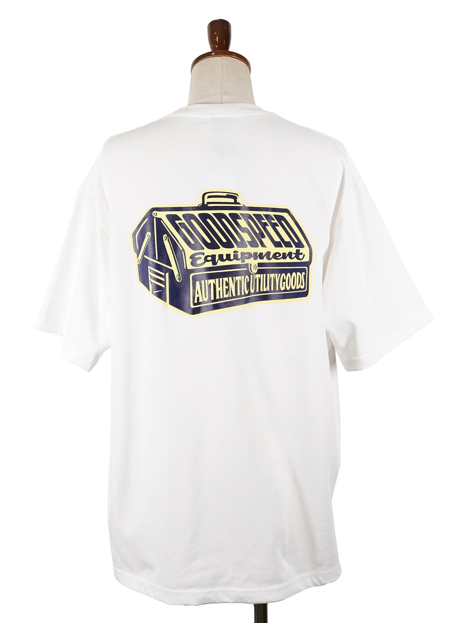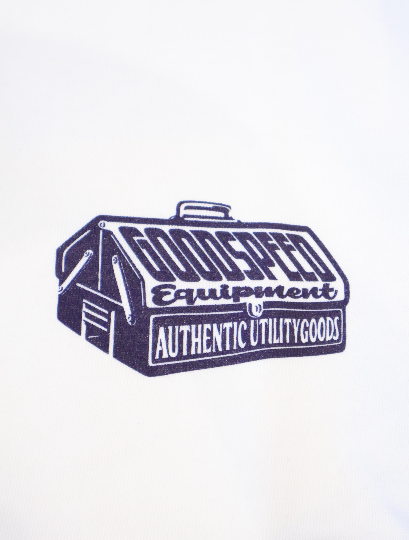 着丈、身巾にゆとりを持たせたビックシルエットで仕上げられており、フロント左胸とバックにオリジナルの「TOOL BOX」のグラフィックがプリント入ります。