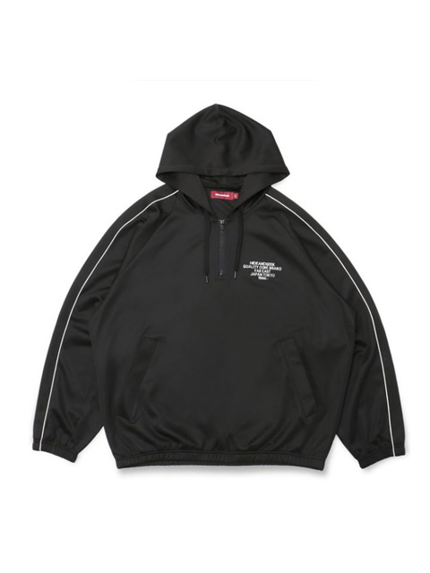 HideandSeekから伸縮性に富んだジャージ素材を使用したハーフジップタイプのフーディーです。