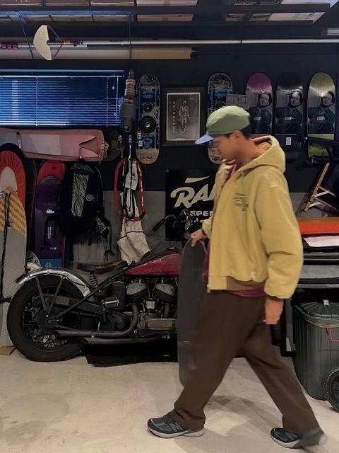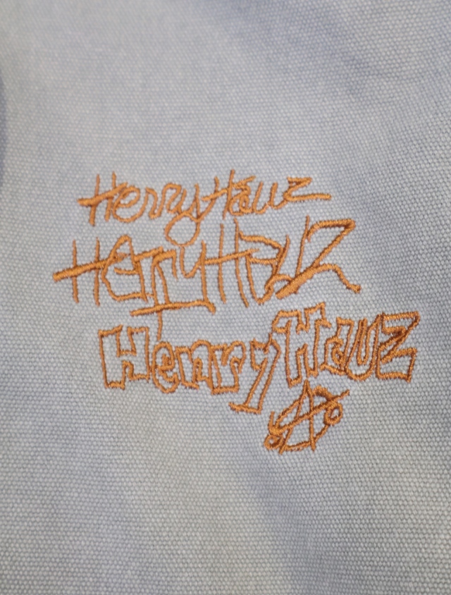 ハードコアパンクの先駆けであるBIG BOYSのオリジナルメンバーTIM KERR氏が、2019年に原宿のHENRY HAUZで個展を開催してくれた際に描き下ろしたショップロゴがフロント左胸に刺繍で入ります。