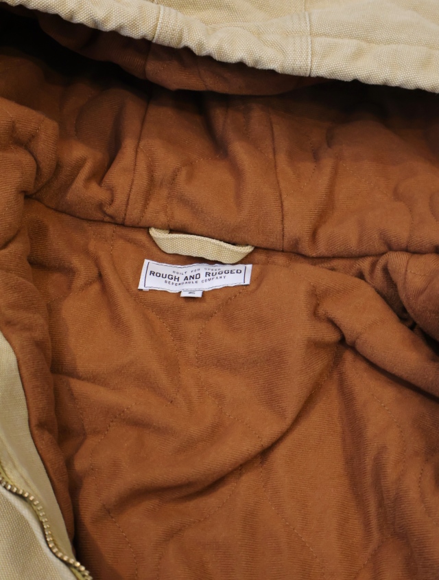 身巾と袖巾にゆとりを持たせたシルエットで作製されており、ライニングは起毛したポリエステル生地を使用し、中綿入りひょうたんキルト仕様となっており、リラックスした着心地ながら保温性の高いアイテムに仕上げられています。