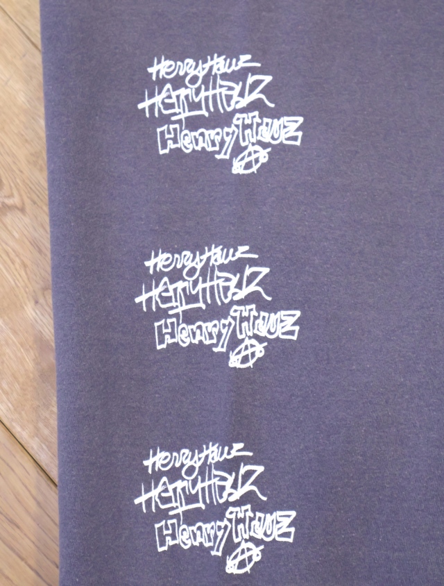 ハードコアパンクの先駆けであるBIG BOYSのオリジナルメンバーTIM KERR氏が、2019年に原宿のHENRY HAUZで個展を開催してくれた際に描き下ろしたショップロゴが左右の身脇頃にプリントで入ります。