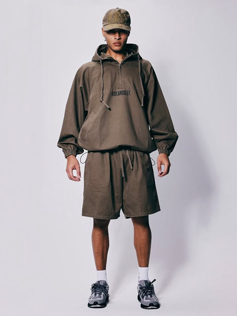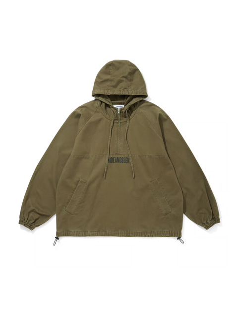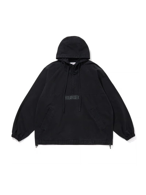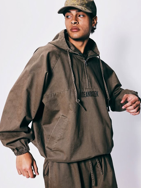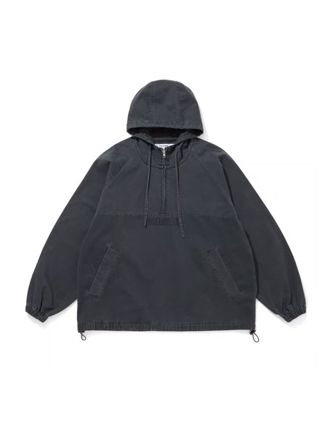 肉厚なコットン生地にガーメントダイ(製品染め)を施した、ヴィンテージ感のある風合いが特徴的なアノラックフーディージャケットです。