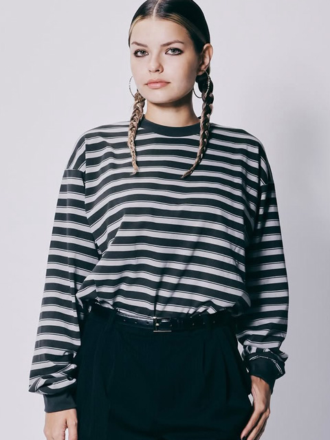 オリジナルのボーダー生地を使用して作製されたプリントロングスリーブティーシャツです。