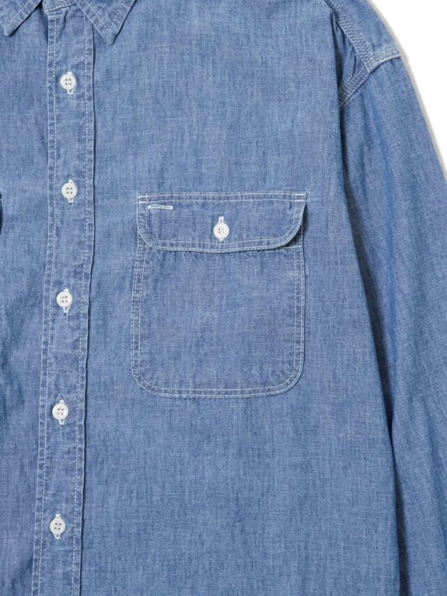 ブランドオリジナルの上質なシャンブレーを使用して作製されたワークシャツです。