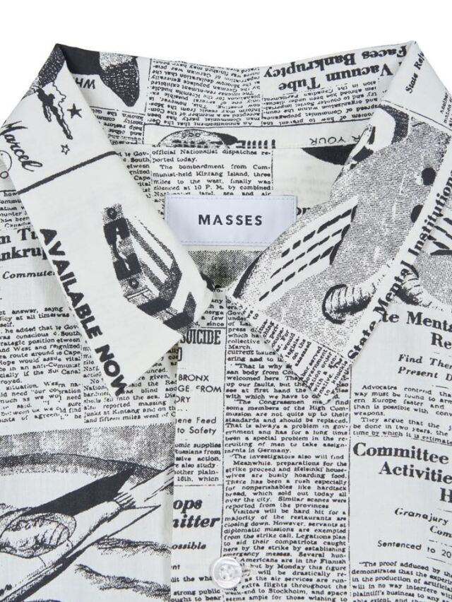 MASSES 「NEWS PAPER SHIRT」 オープンカラーシャツ