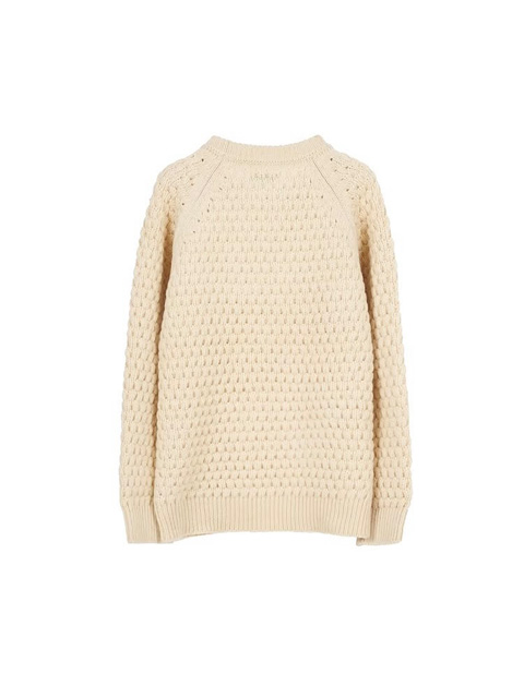 上質なウール素材で厚手に編み込まれたラグランスリーブ仕様のクルーネックニットセーターです。