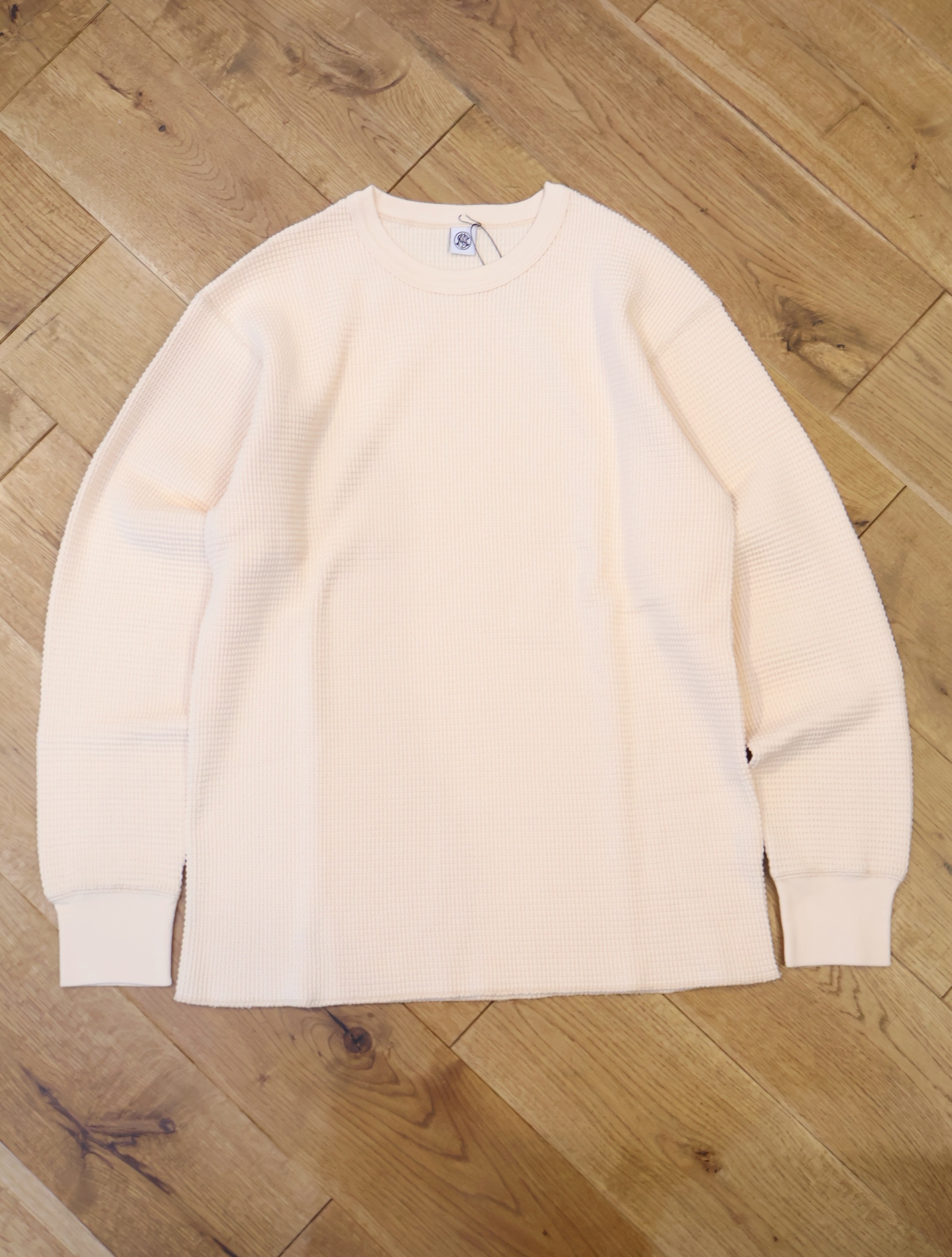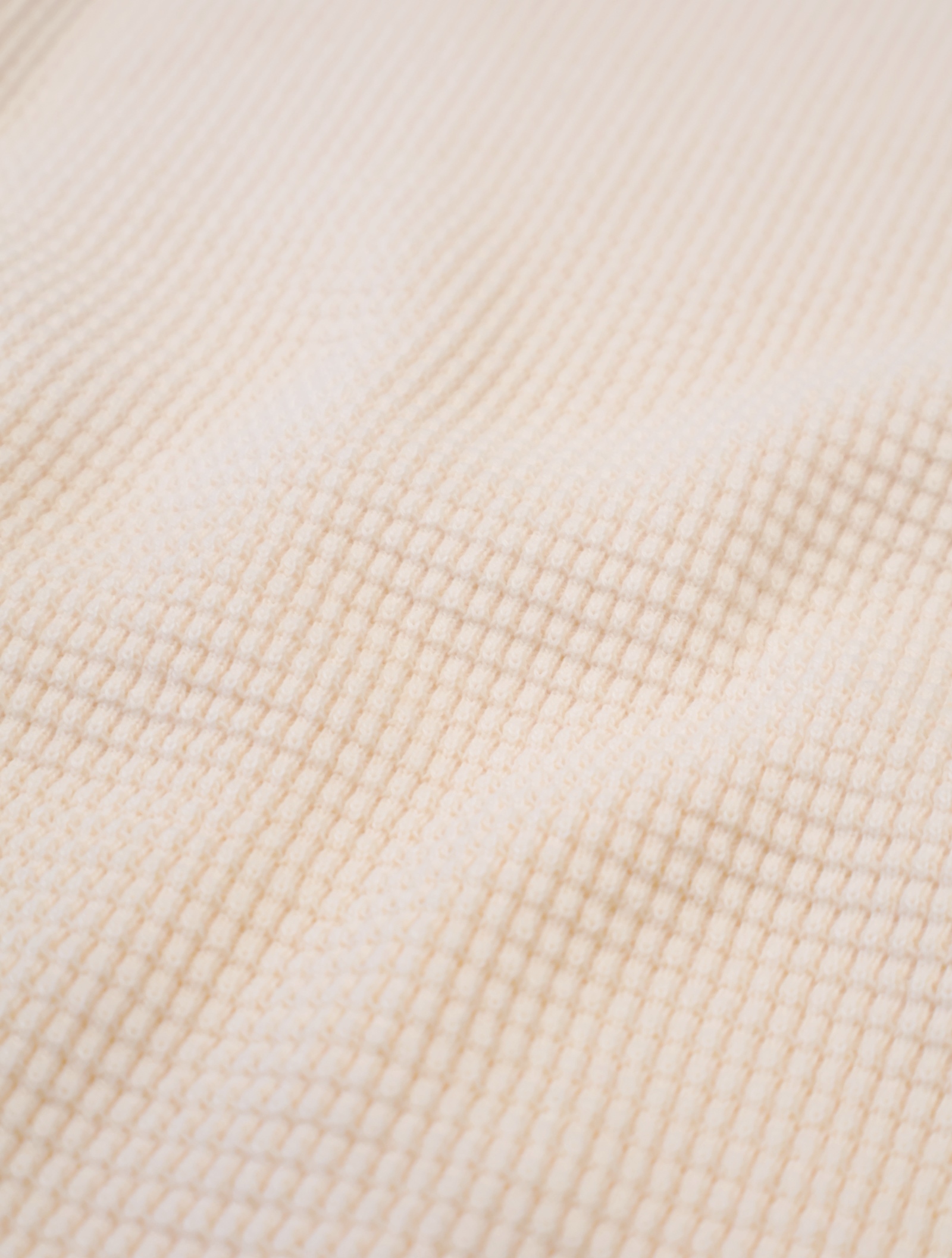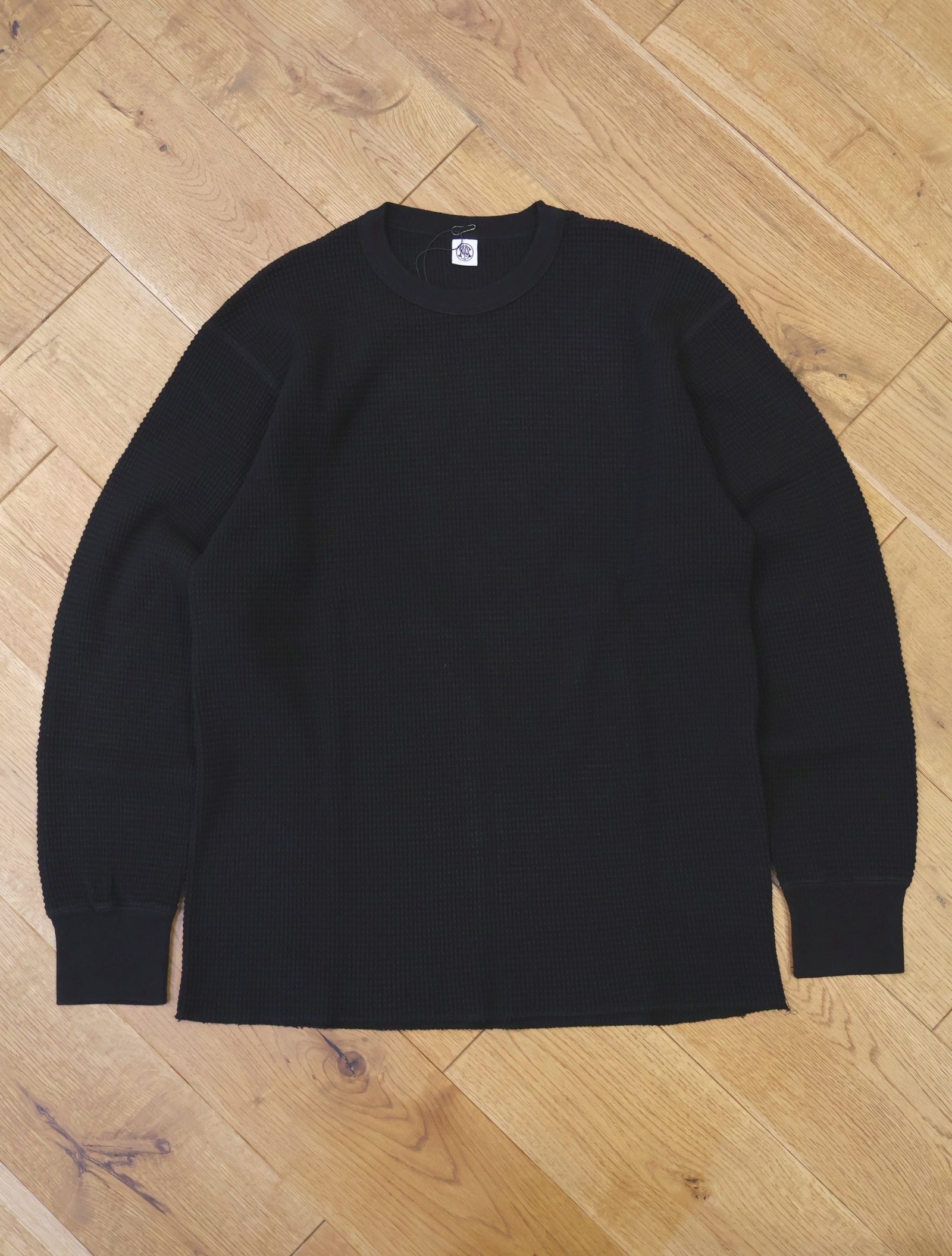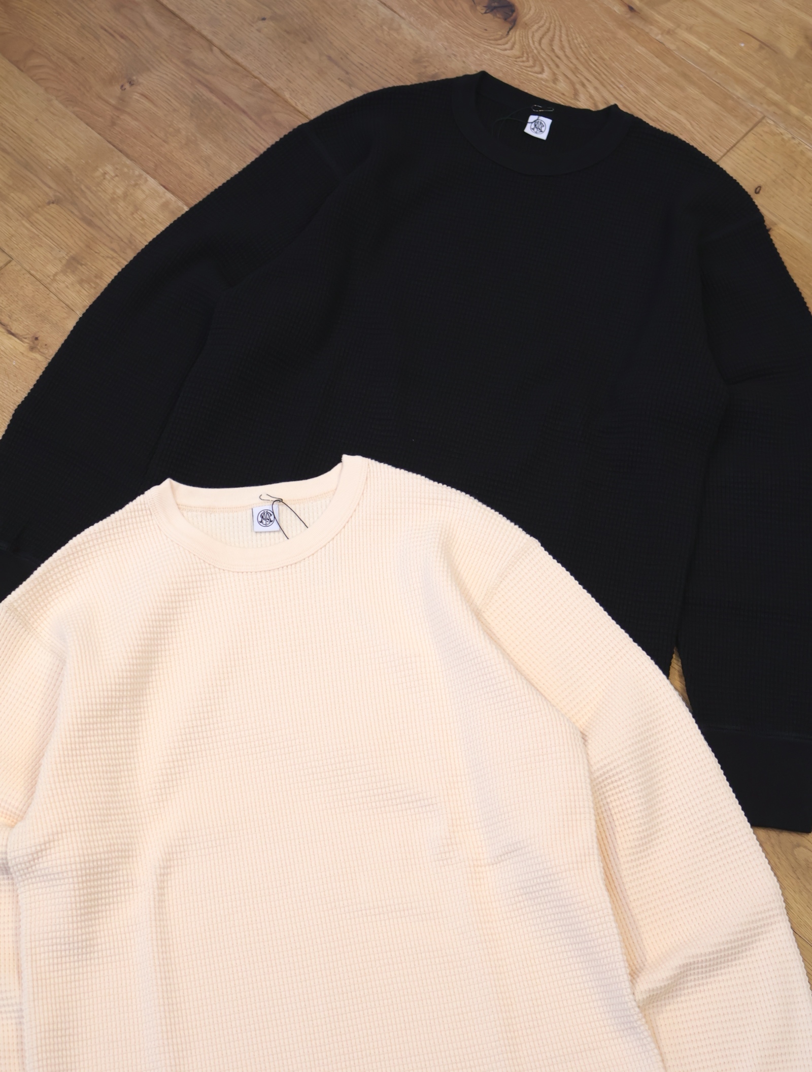 オリジナルで生地から作製したワッフル地に仕上げたサーマルシャツ。