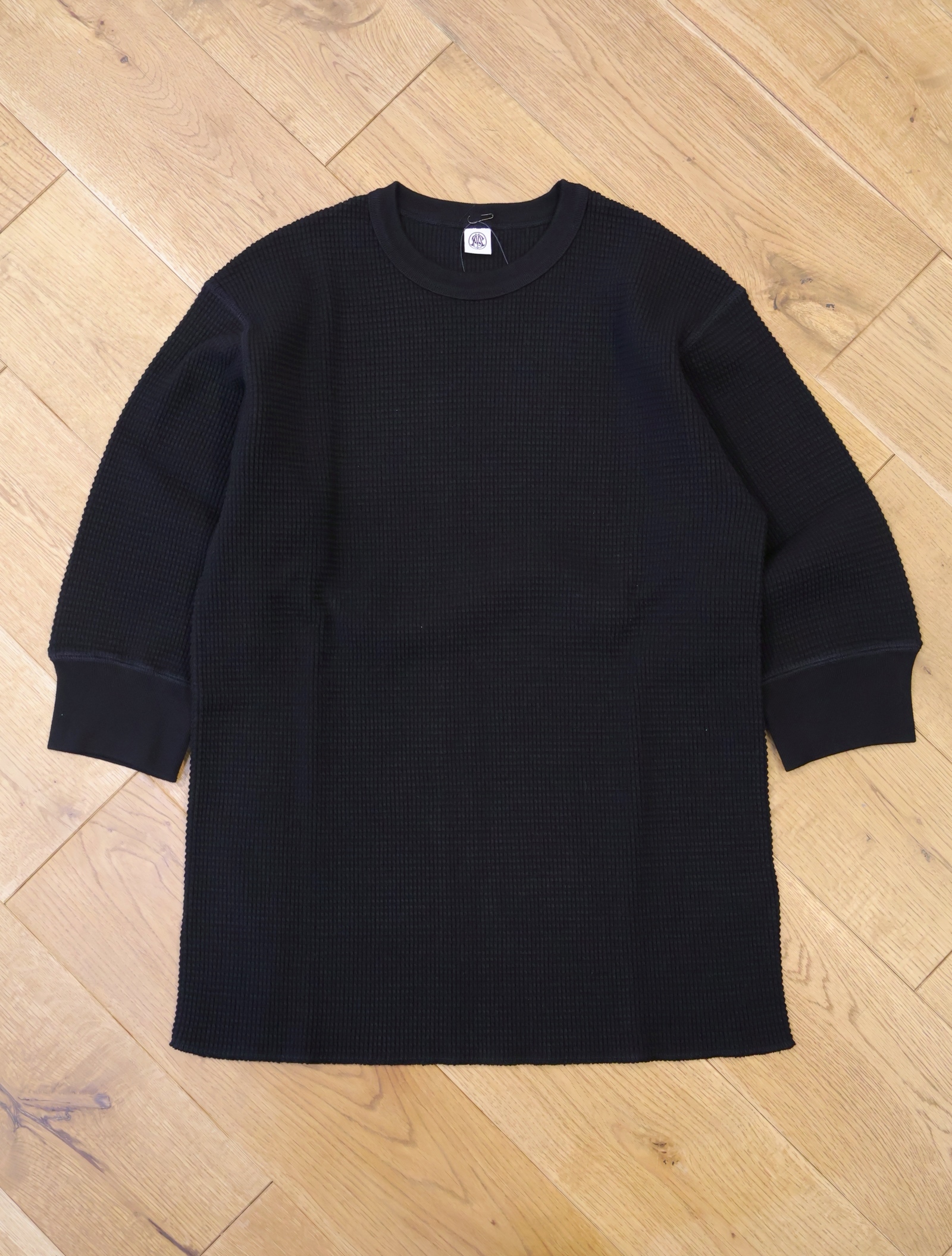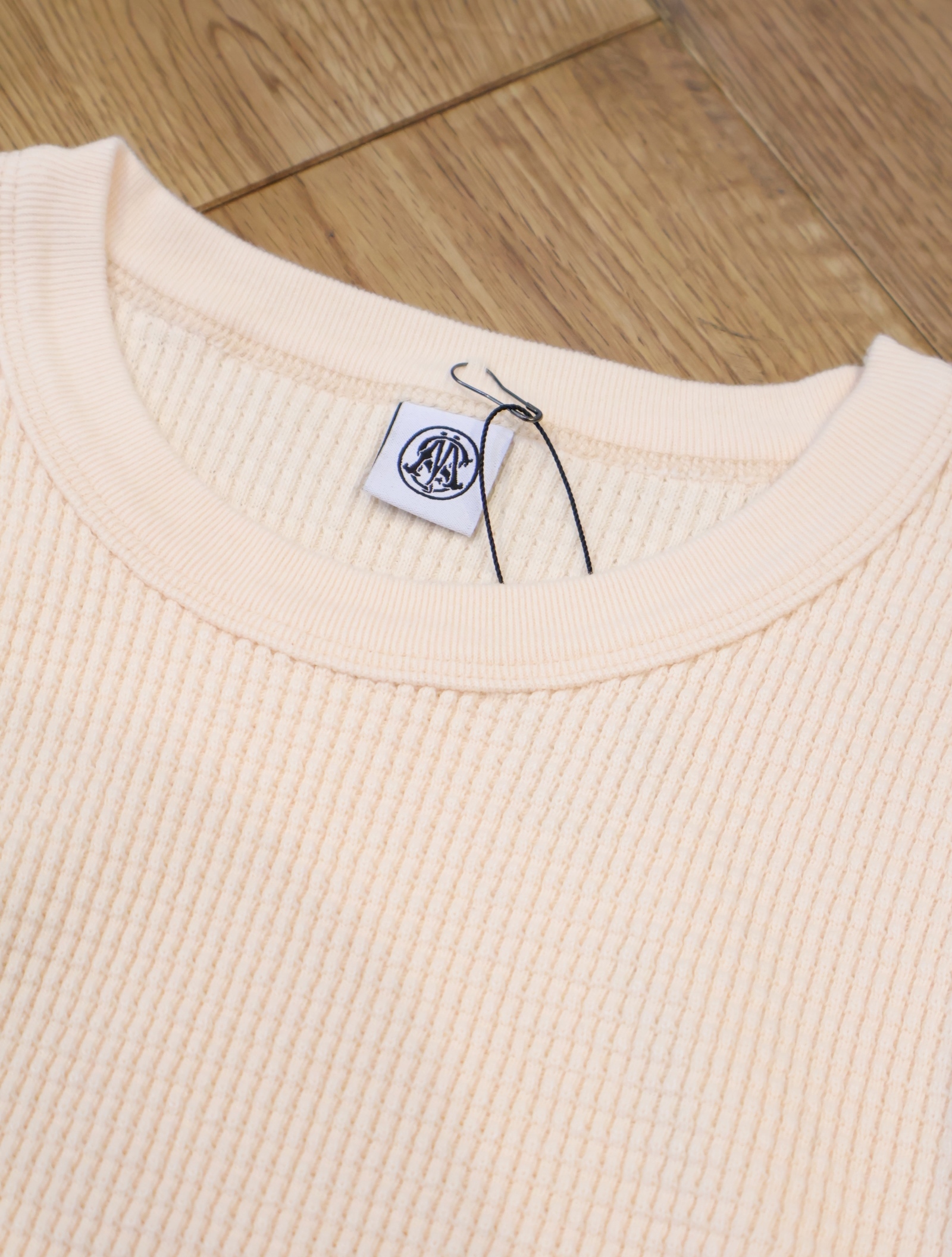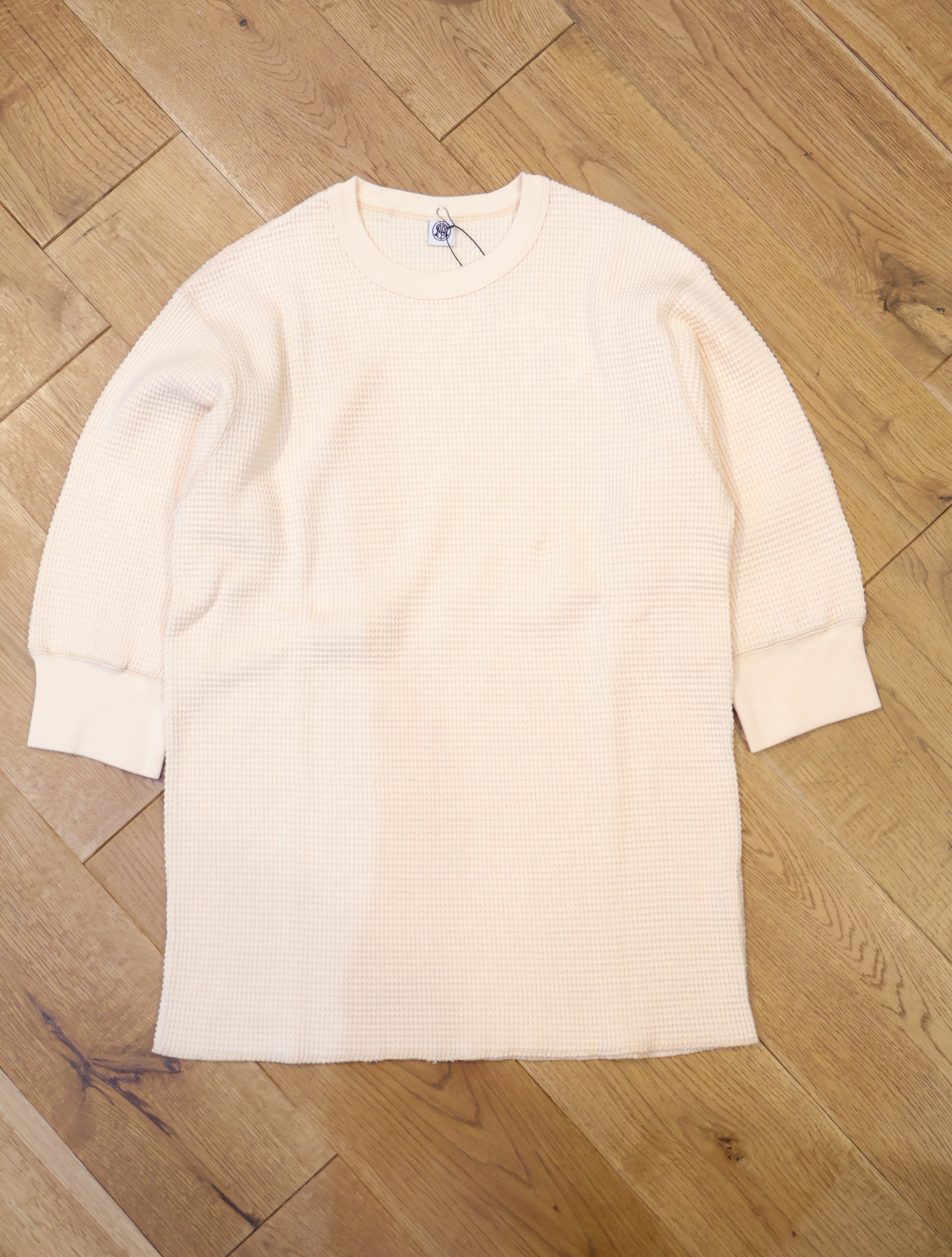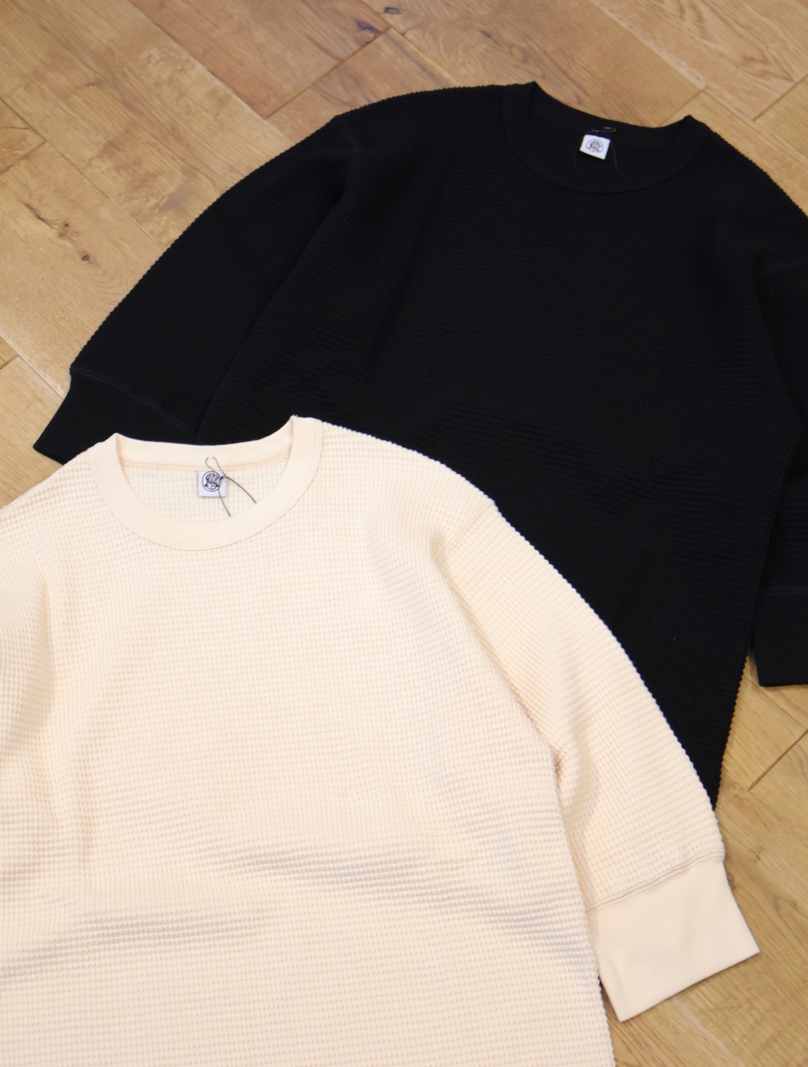 オリジナルで生地から作製したワッフル地に仕上げたサーマルシャツ。