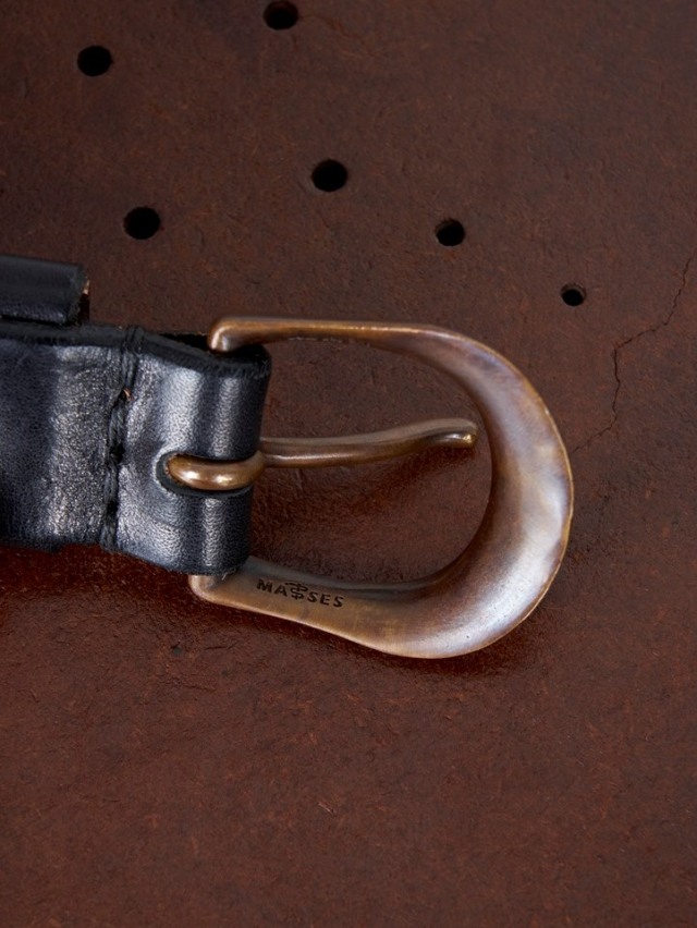 バックルは真鍮製で一から作成したオリジナル、背面上部にY’s for men、下部にMASSESロゴを刻印が入ります。