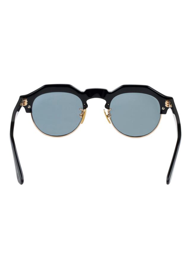 クラウンパント型のブローラインに、彫金を施したアンダーリムを配すことにより、武骨さの中に気品が見える仕上がりです。