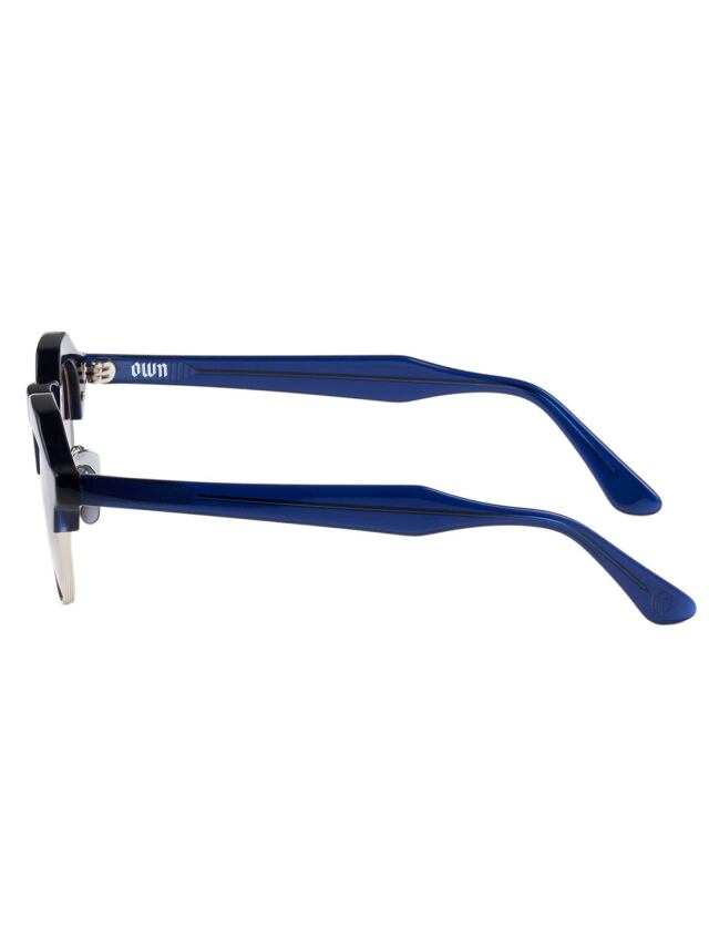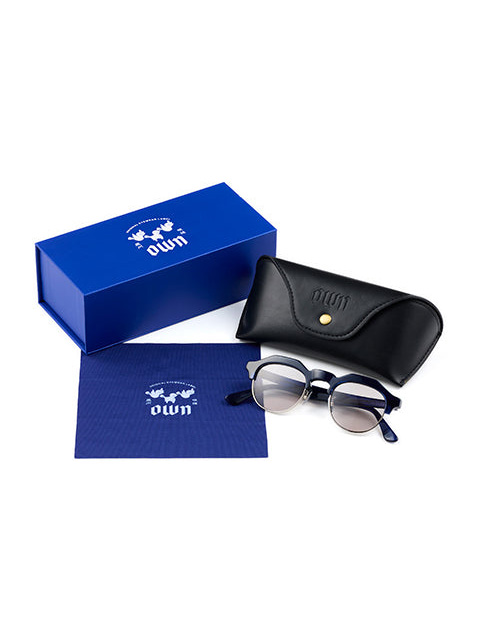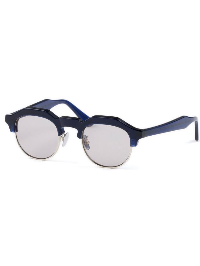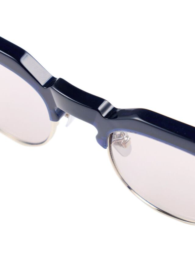 クラウンパント型のブローラインに、彫金を施したアンダーリムを配すことにより、武骨さの中に気品が見える仕上がりです。