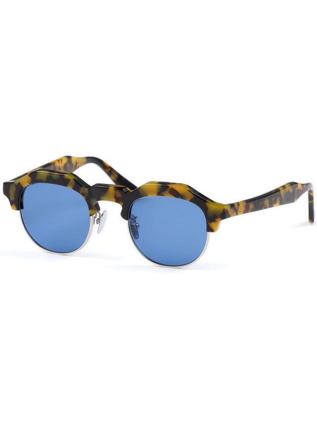 クラウンパント型のブローラインに、彫金を施したアンダーリムを配すことにより、武骨さの中に気品が見える仕上がりです。