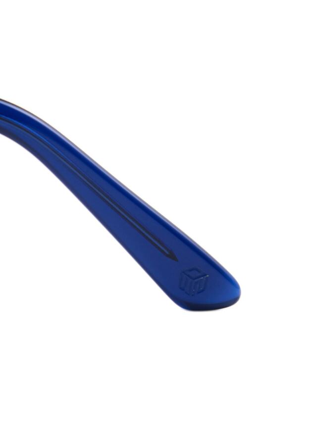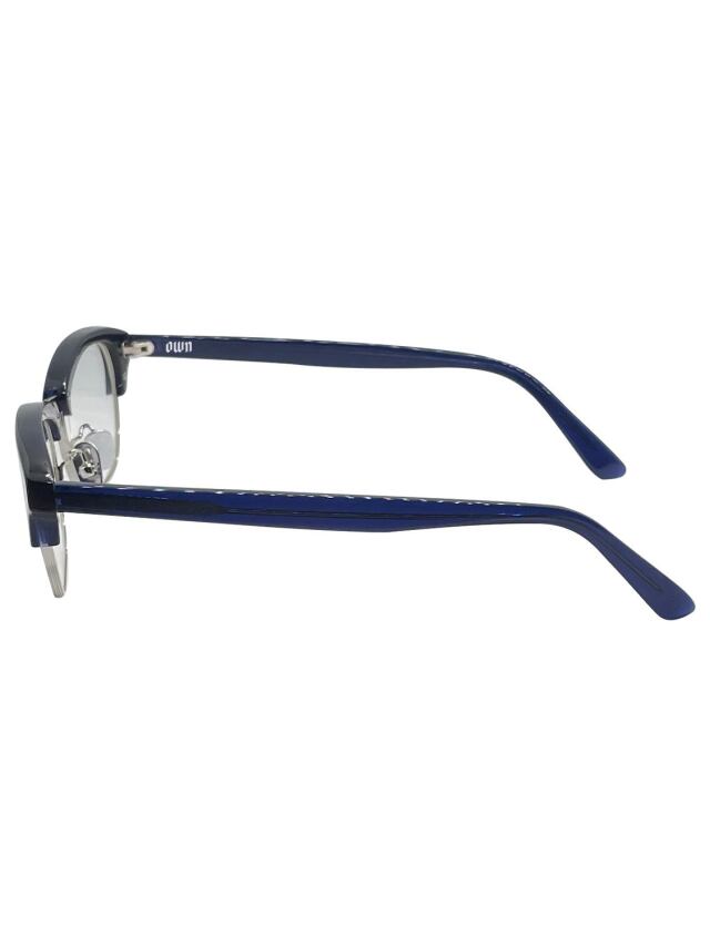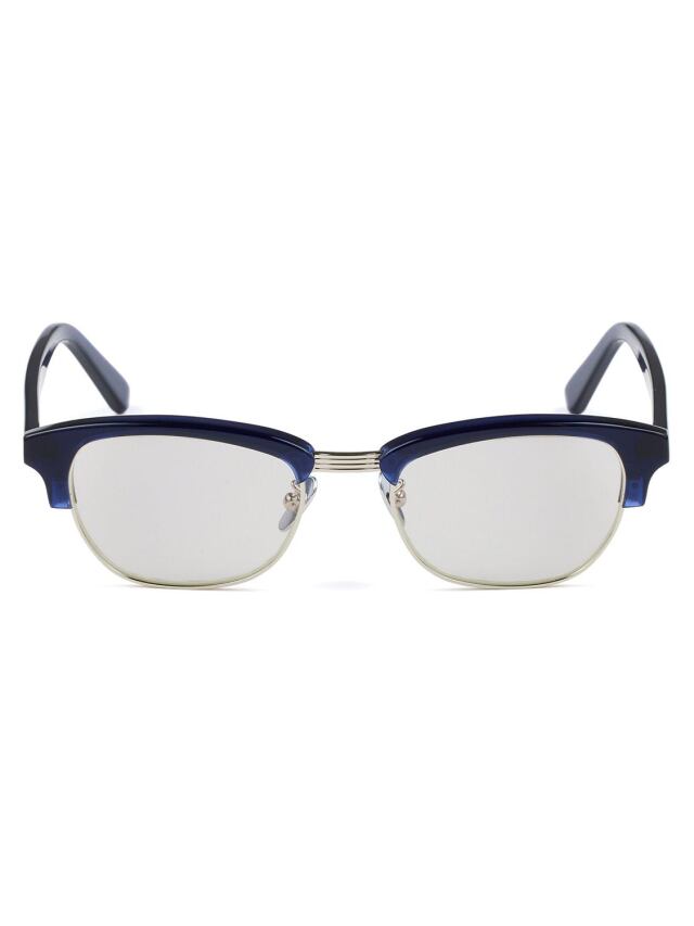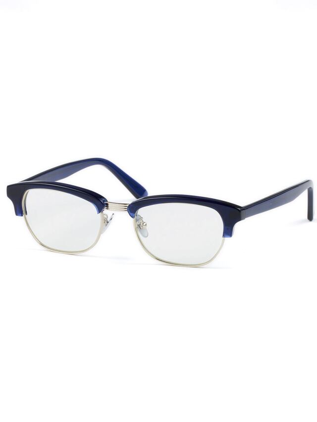 天地幅を抑えたレンズシェイプと、幅広なブリッジを組み合わせたブロウタイプ。
