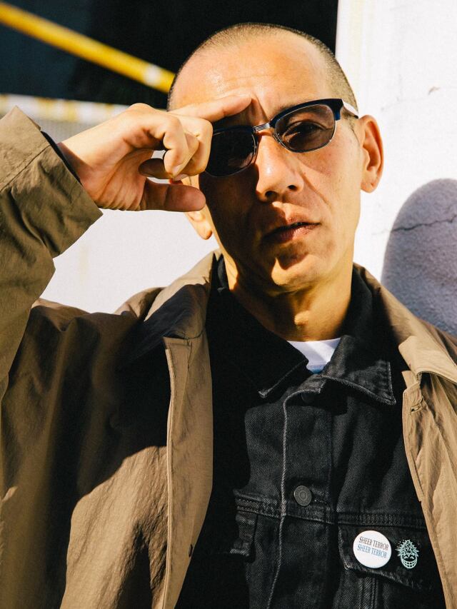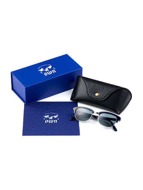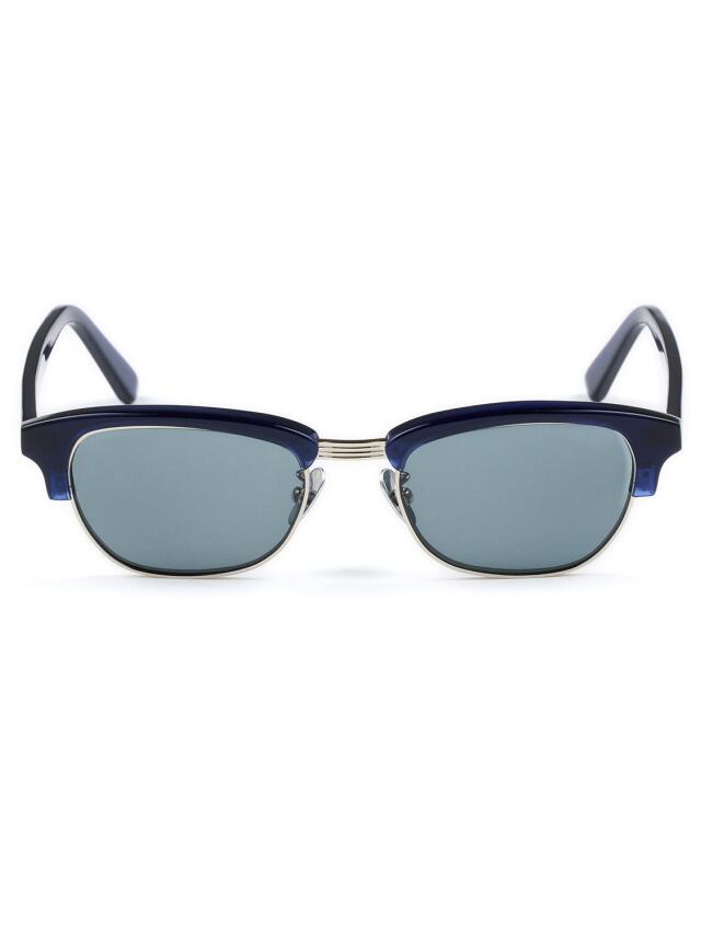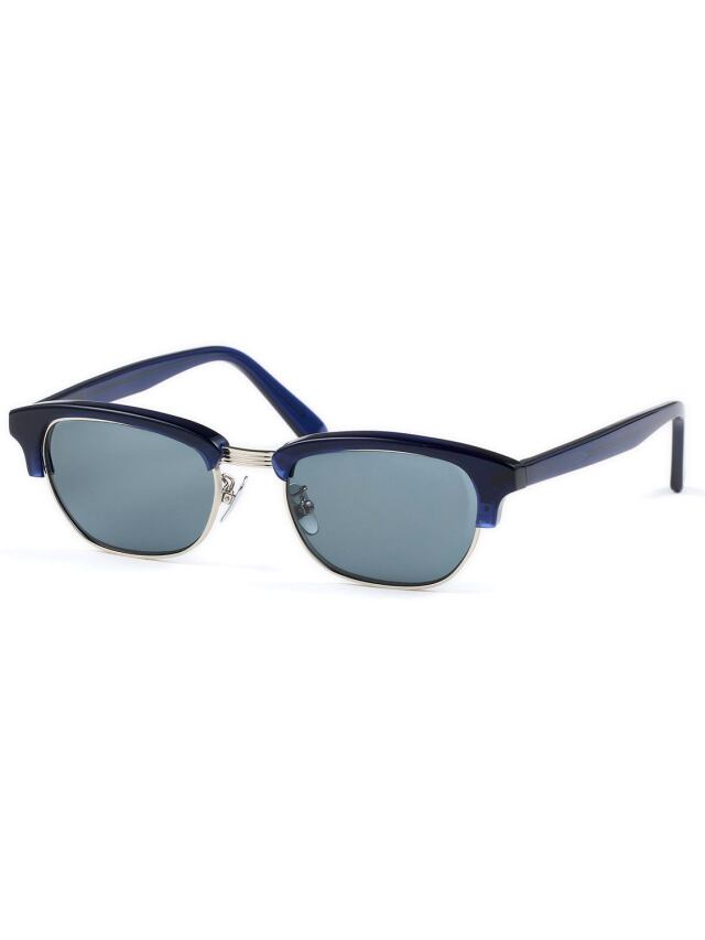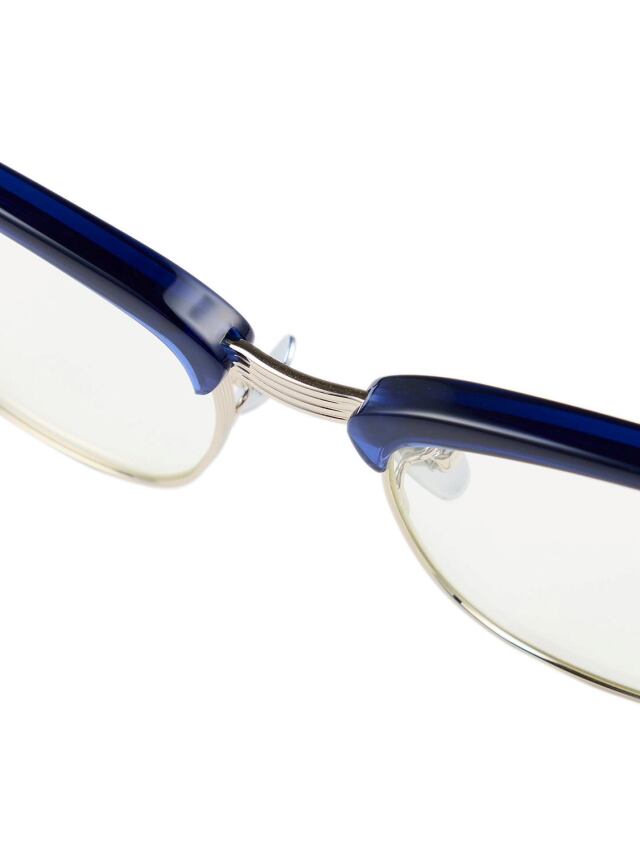 天地幅を抑えたレンズシェイプと、幅広なブリッジを組み合わせたブロウタイプ。