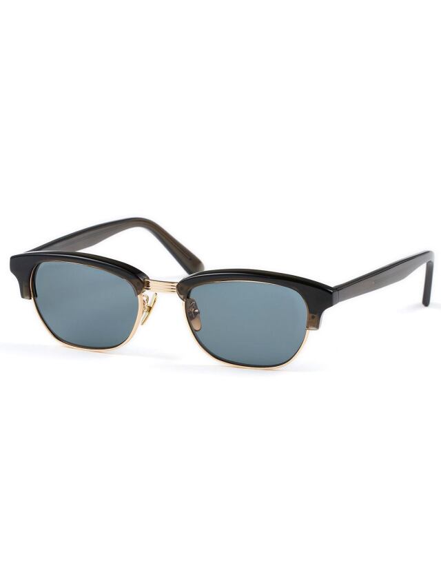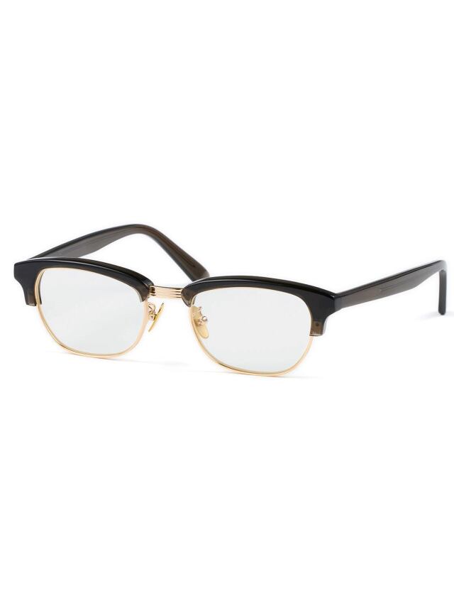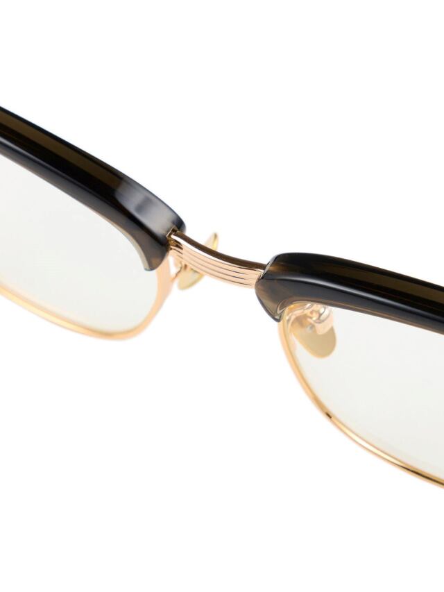 天地幅を抑えたレンズシェイプと、幅広なブリッジを組み合わせたブロウタイプ。