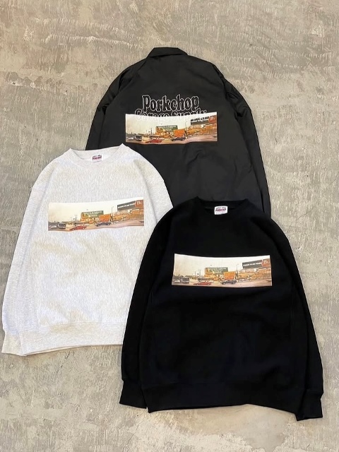 PORKCHOP GARAGE SUPPLYから新作のプリントスウェットトレーナーがリリースです。