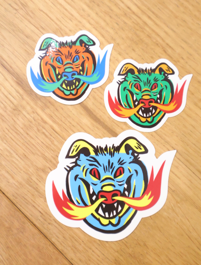 独特な世界観を持つサインペインター&スカルプチャー(彫刻)アーティストのMASA氏が手掛けるブランド”Masa Sculp”とのコラボアイテムとして、3枚1組のステッカーセットがリリースです。