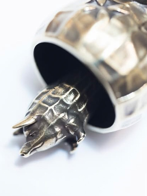 ピーナッツ部分には両ブランドのネーム、アイアンクロス・ボウタイの刻印が入るなど細部にまで拘られた仕上がりに。