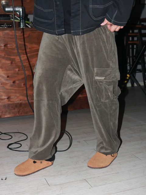 生地には高級感とストリートな空気感を兼ね備えているT/Cベロア素材を使用しており、丈夫でありながら軽い着心地となっています。