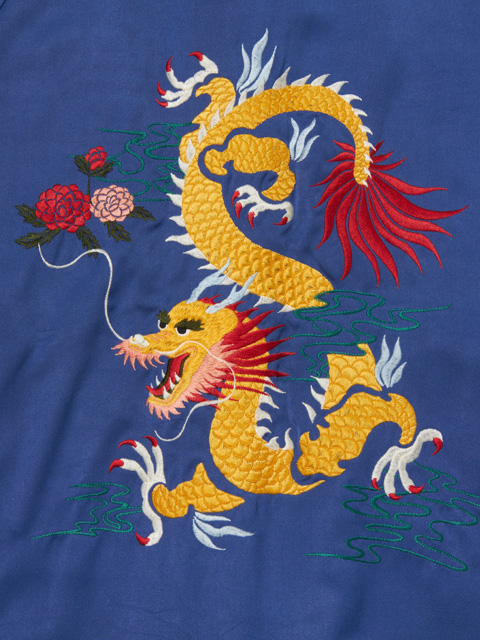 フロント左胸にはブランドネームがチェーン刺繍で施されており、バックにはビンテージな雰囲気の横振り刺繍でグラフィックが入ります。