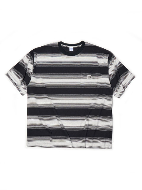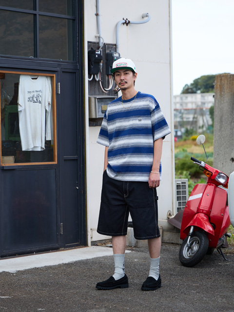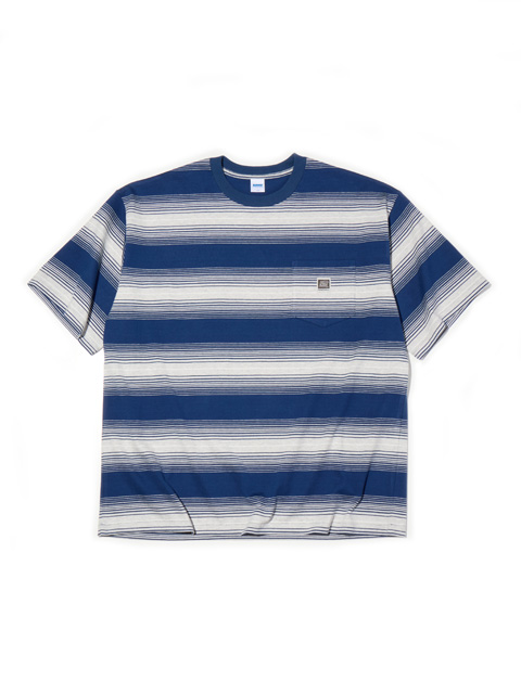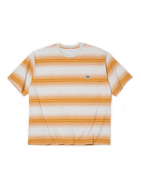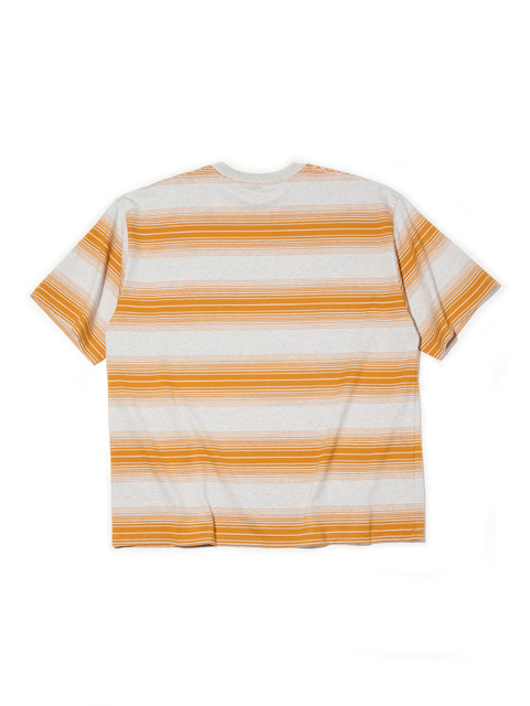 ビンテージラグをイメージソースにし、杢糸で作ったピンストライプボーダーの天竺生地を使用したポケットティーシャツです。