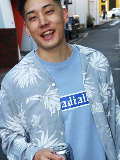 RADIALLらしい、ビンテージのパイナップルアロハのような配列のアガベの総柄が印象的な一枚。