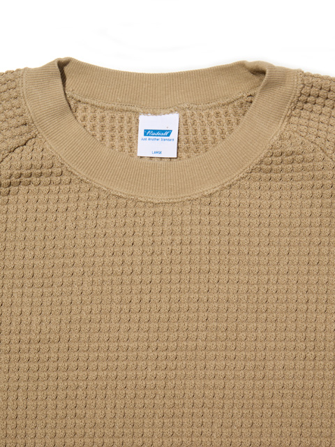 堅牢性と発色の良いT/Cの糸でざっくりと編み上げた、ブランド定番のワッフル生地を使用したクルーネックティーシャツです。