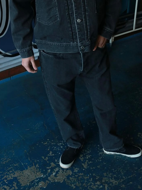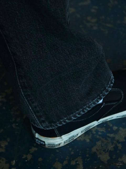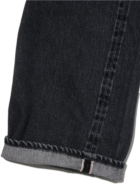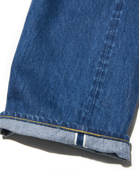 セルビッチデニムを使用しているため身頃脇はストレート、内股をO型にくったパターンを使用しております。